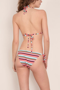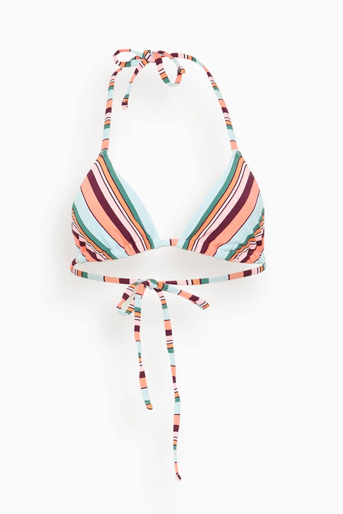 The Lemlem Malia Triangle Top will have you ready for your next vacation. This triangle bikini top features tie straps with medium coverage. Wear yours with the matching bikini bottom. - Triangle bikini top - Adjustable tie straps - Medium coverage - No padding - UV protection UPF 50+ - 90% Recycled polyamide, 10% Elastane
