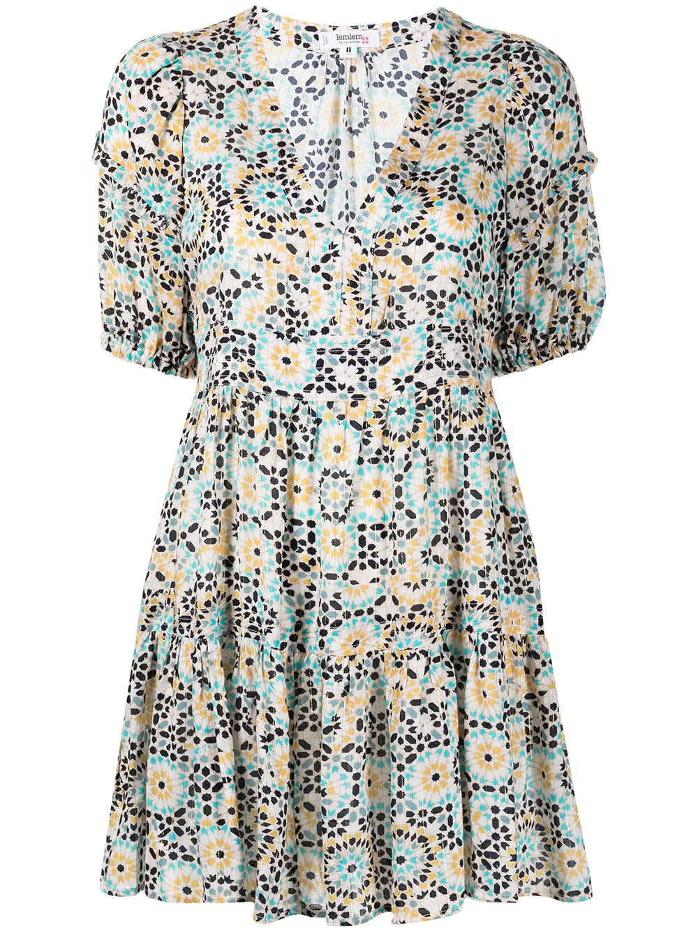 Telem graphic-print minidress tiles turquoise all-over graphic print V-neck short sleeves pleated skirt Imported Composition Rayon 95%, Metallic Fibre 5% SIZE & FIT Model measurements Height 5 ft 10 in(1.77 m) Bust/Chest 31.88 in(81 cm) Hips 34.64 in(88 cm) Waist 24.01 in(61 cm) Washing instructions Dry Clean Only