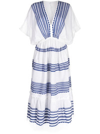 Yani plunge dress Highlights - White/cobalt blue - Cotton blend - Embroidered design - V-neck - Short sleeves - Fitted waistline - Mid-length Imported Composition Cotton 95%, Acrylic 5% Washing instructions Hand Wash