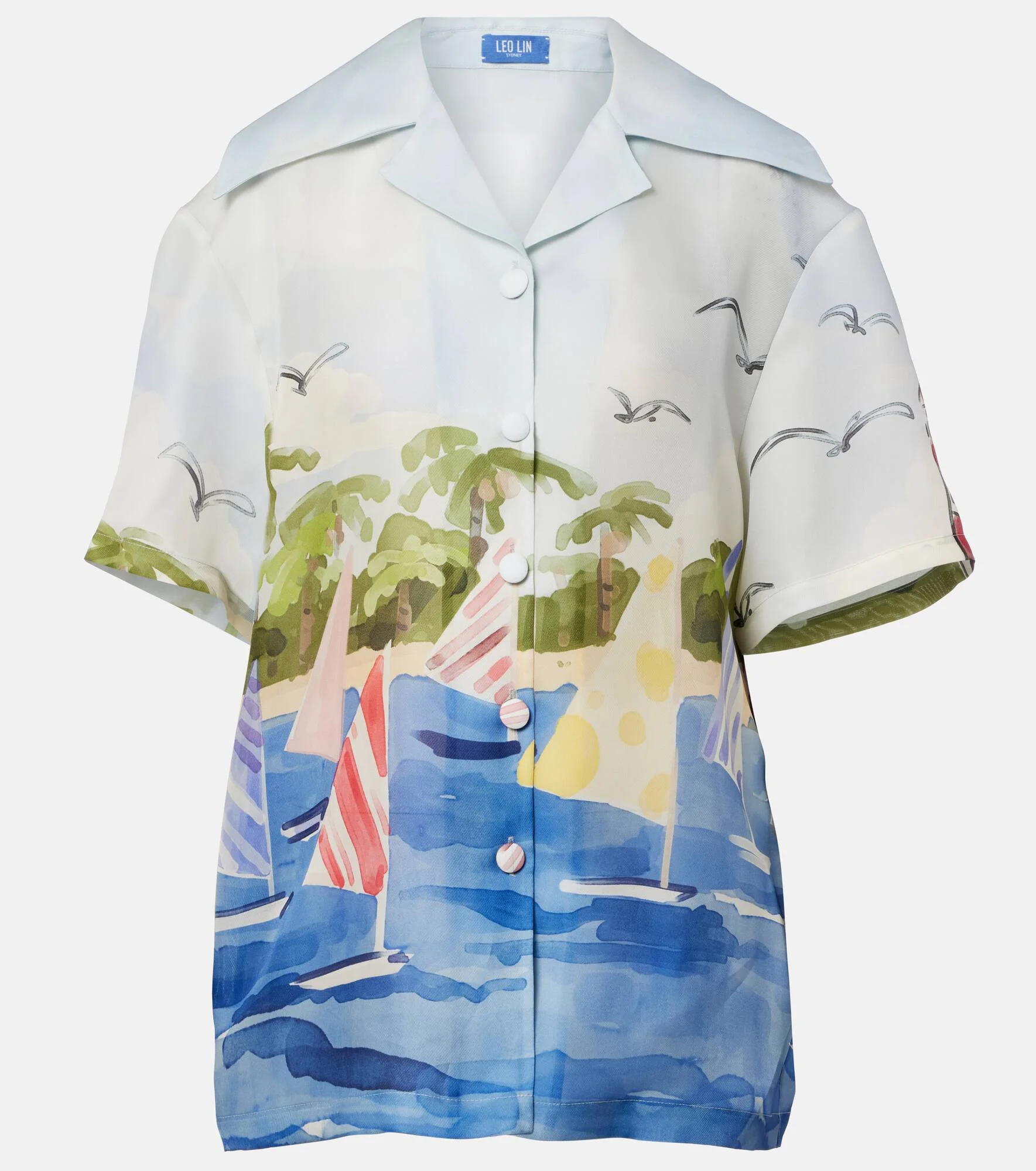 A dynamic interplay of structure, drape, and texture allows Leo Lin to unite East and West design principles in beautiful harmony. Made purely from silk, the Casey shirt is a short-sleeved style with a nautical-inspired print and boxy silhouette. Product Details - Material: 100% silk - Care instructions: dry clean - Made in China - Color: multicoloured - Designer color name: Nautical Print - Item color: blue, multicolor - Collar: notch neck - Closure: buttoned front - Item number: P01121178 Size & Fit - True to size - For a closer fit, we recommend taking one size down - Semi-sheer - Oversized - Non-stretchy fabric - Falls below the hip - The model seen in the picture is 178cm-5'10" and wearing a size S