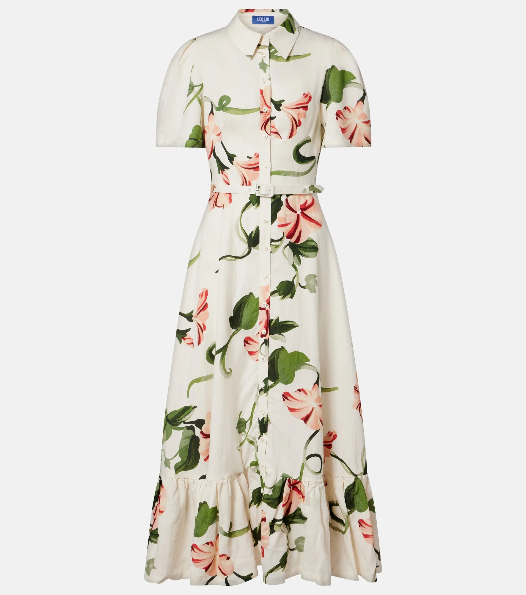 Leo Lin draws inspiration from his Chinese heritage and Australian landscapes to inform his eponymous brand’s ready-to-wear creations. Crafted from a linen blend, the Becca shirt dress boasts a charming floral print and a detachable belt. Product Details - Material: 55% linen, 45% viscose - Care instructions: hand wash - Made in China - Color: white - Designer color name: Vine Print In Snow - Detachable belt - Closure: buttoned front - Item number: P01158024 Size & Fit - True to size - Cinched waist - Adjustable at the waist - Non-stretchy fabric - The model seen in the picture is 178cm-5'10" and wearing a size US 2