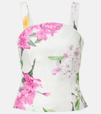 Fusing modern artistry with timeless grace, Leo Lin redefines contemporary elegance. Rendered in a floral and pear print, the Isadora top is crafted from a linen blend and is shaped to a sleeveless silhouette with zipped closure at the back. Product Details - Material: 92% linen, 8% nylon - Care instructions: dry clean - Made in China - Color: multicoloured - Designer color name: Floral Pear Print - Item color: multicolor - Lining: 100% cotton - Hardware color: gold - Closure: zipped back - Item number: P01121253 Size & Fit - True to size - Cinched waist - Non-stretchy fabric - Slightly cropped - The model seen in the picture is 178cm-5'10" and wearing a size US 2