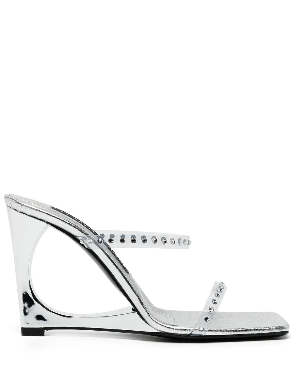 Lucas 110mm crystal-embellished sandals Highlights - Silver - Crystal embellishment - Open toe - Slip-on style - Branded insole - High wedge heel Made in Italy Composition Sole: Leather 100% Inner: Leather 100% Outer: Leather 100% SIZE & FIT Measurement HEEL 4.33 in(11 cm)