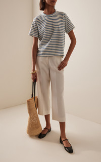 LA-based label Les Tien treats its fabrics in-house to create a vintage look and feel. The 'Jane' tee is made from lightweight combed cotton jersey that's garment dyed for softness. It has a classic fit that sits below the waistline. PRODUCT DETAILS - Resort '26 - Slip on - Composition: 97% cotton, 3% spandex - Machine wash - Made in the USA
