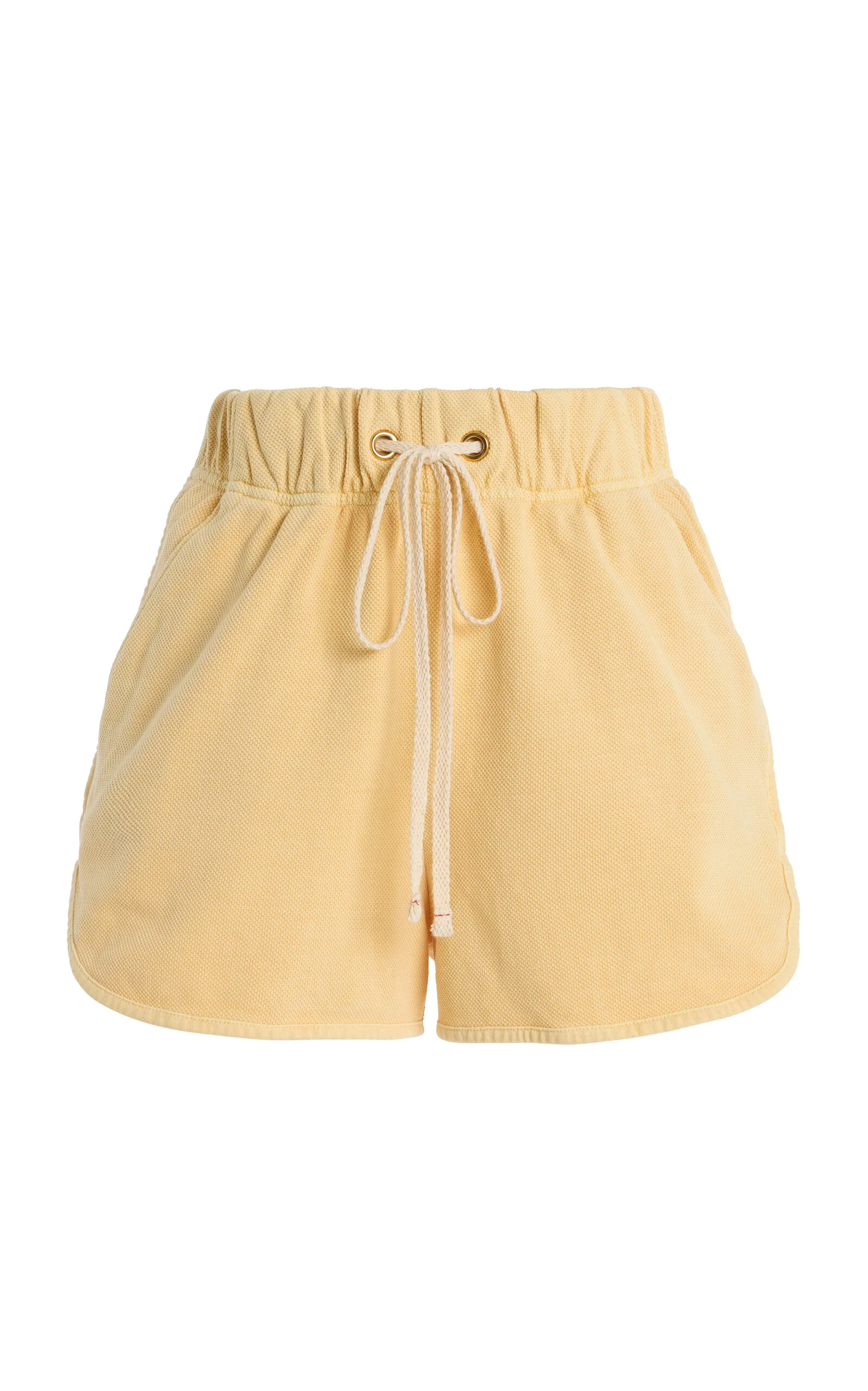 LA-based label Les Tien treats its fabrics in-house to create a vintage look and feel. The 'Serena' shorts have a high-rise silhouette made from brushed cotton fleece that's garment washed for softness. Pair yours with the matching tee. PRODUCT DETAILS - Pre-Fall '25 - Pull on - Composition: 100% cotton - Designer color: Washed Butter - Machine wash - Made in the USA