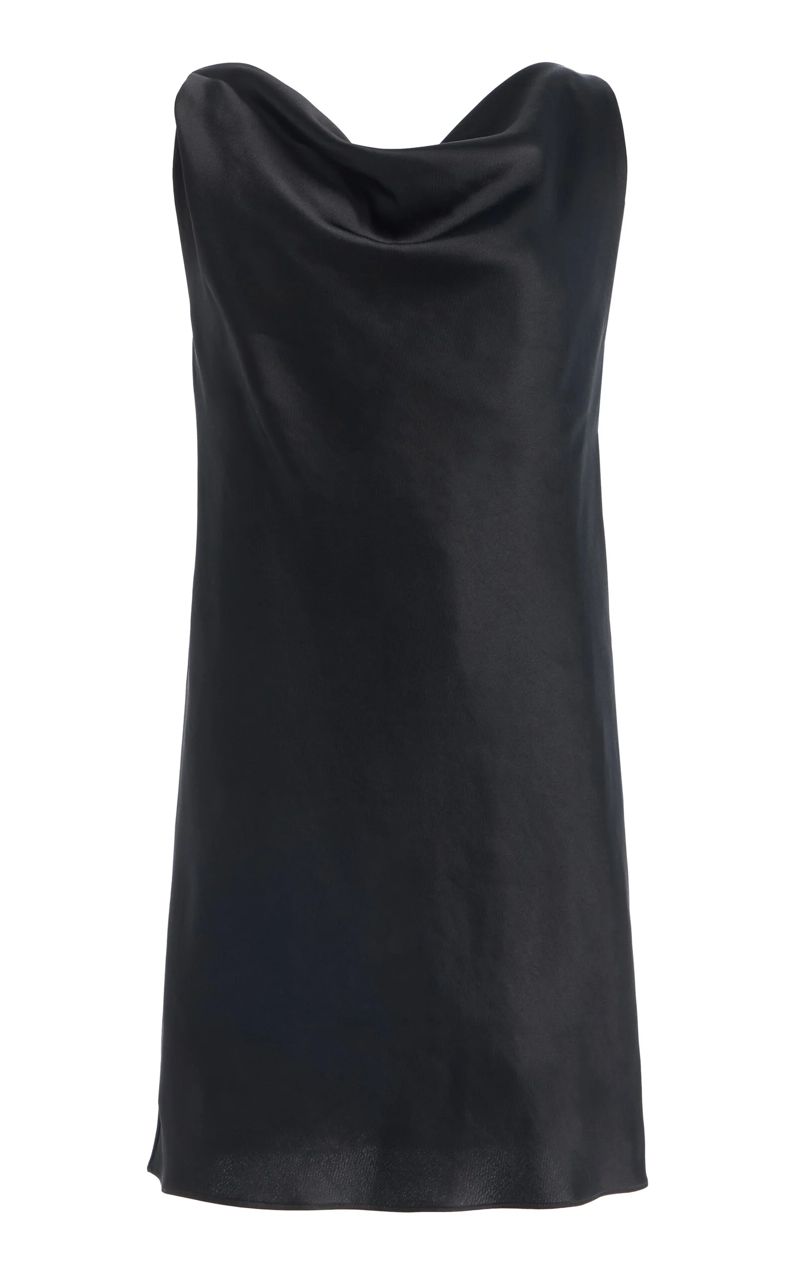 Founded by Lili Chemla, Leset is devoted to making irresistible casual essentials that are clean, modern and always enjoyable to wear. Whether it's day or night or somewhere in between, the LA-based brand's loungewear pairings elevate versatility to new heights. Cut from best-selling Japanese-crafted satin, The Barb Cowl Mini Dress is a sleeveless silhouette featuring a perfectly draped, asymmetrical neckline and a fluted mini length. PRODUCT DETAILS - Resort '26 - Zip fastening - Composition: 75% acetate, 25% polyester - Dry clean - Made in the USA