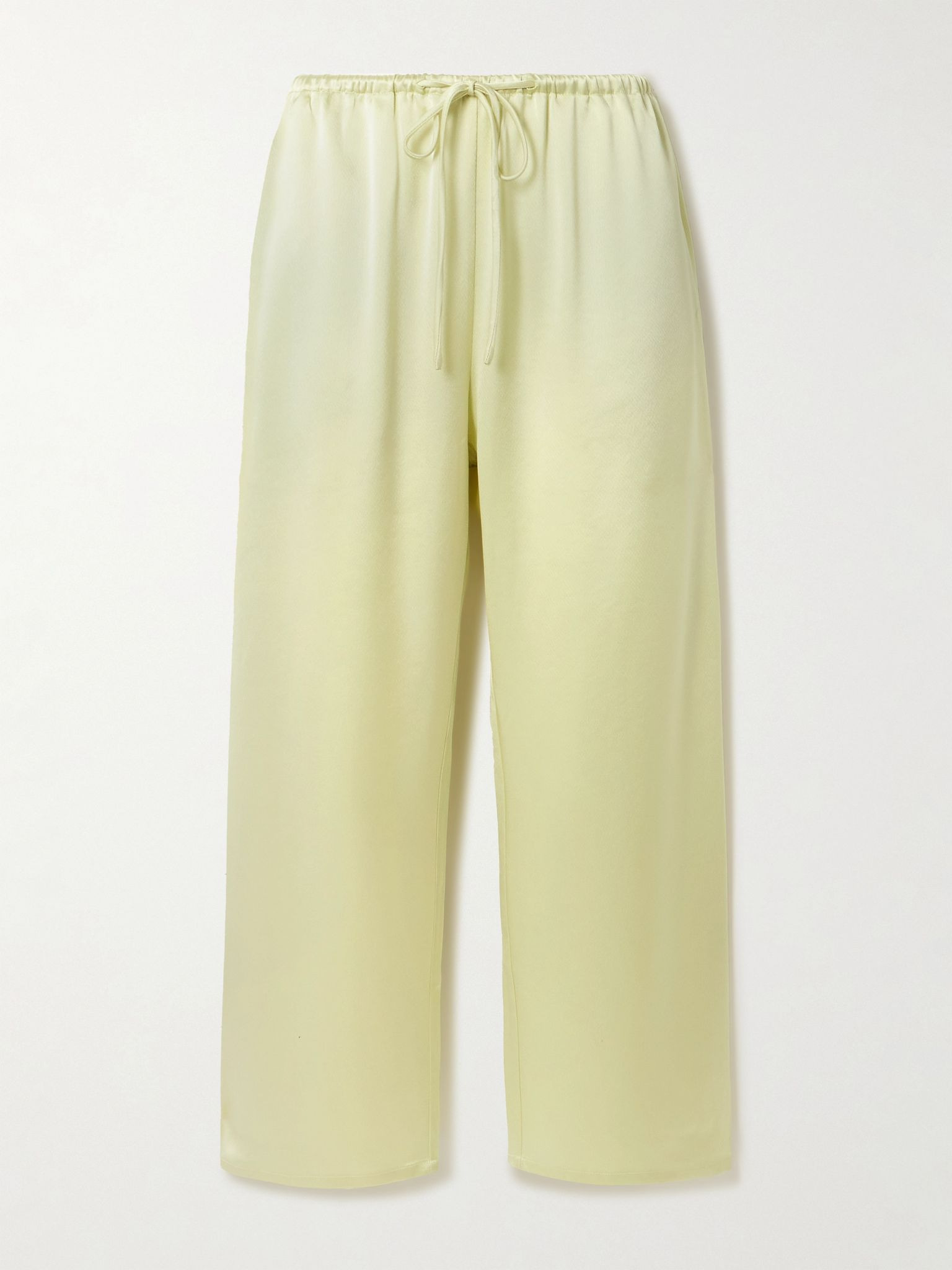 Designed with a modular approach, LESET's collections are organized by fabric type so that closet building is "simple, intuitive, and cohesive". These pants belong to the 'Barb' line which is made from glossy Japanese satin. They're cut with cropped wide legs and have a comfortable drawstring waist. Size & Fit - Fits true to size, take your normal size - Mid-rise, cut for a wide-leg fit - Elasticated at the waist for a comfortable fit - Mid-weight, non-stretchy fabric - Model is 189cm/ 5’11” and is wearing a size XSmall Model measurements: - Bust: 80cm/ 31.5" - Waist: 65cm/ 25.5" - Hip: 89cm/ 35" Details & Care - Yellow satin - Pull on - 76% triacetate, 24% polyester - Dry clean - Designer color: Citrine