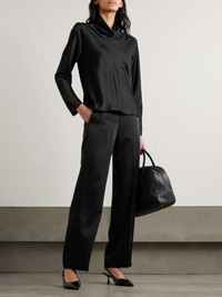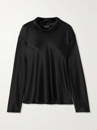 LESET’s ‘Barb’ line envisions timeless staples that seamlessly transition from daytime to evening. This blouse is cut from Japanese satin for a fluid, relaxed shape with a draped turtleneck. Tuck yours into denim, tailoring or a pencil skirt. Size & Fit - Fits true to size, however those who are between sizes should take the smaller size - Cut for a relaxed fit - Mid-weight, fluid, non-stretchy fabric - Model is 175cm/ 5'9" and is wearing a size XSmall Model measurements: - Bust: 81cm/ 32" - Waist: 64cm/ 25" - Hip: 89cm/ 35" Details & Care - Black satin - Slips on - 75% triacetate, 25% polyester - Dry clean