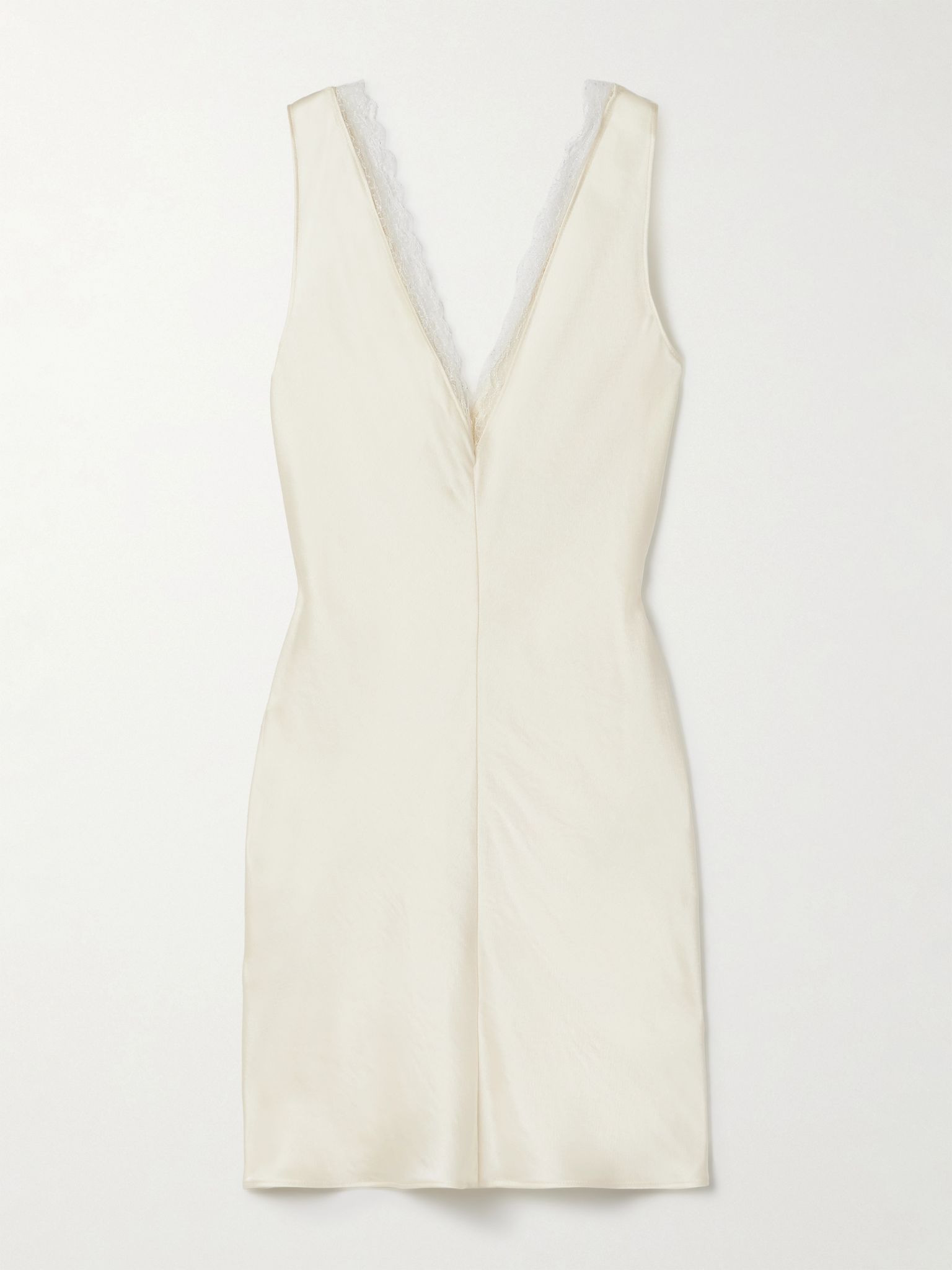 Barb lace-trimmed hammered-satin mini dress Cream