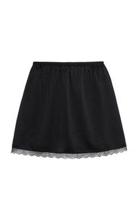 Founded by Lili Chemla, Leset is devoted to making irresistible casual essentials that are clean, modern and always enjoyable to wear. Whether it's day or night or somewhere in between, the LA-based brand's loungewear pairings elevate versatility to new heights. For a relaxed, yet refined finish, this mini skirt is made from ‘Barb’ satin – a fluid material constructed in Japan exclusively for the label. It boasts an elasticated trim at the waist and lace detailing at the hem. Select the matching blouse to complete the set. PRODUCT DETAILS - Fall/Winter ‘25 - Slip on - Composition: satin. lace - Dry clean - Imported