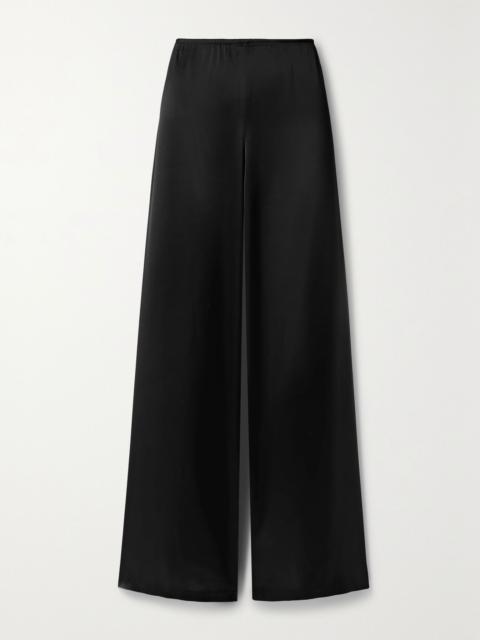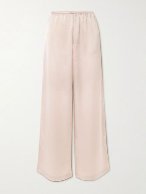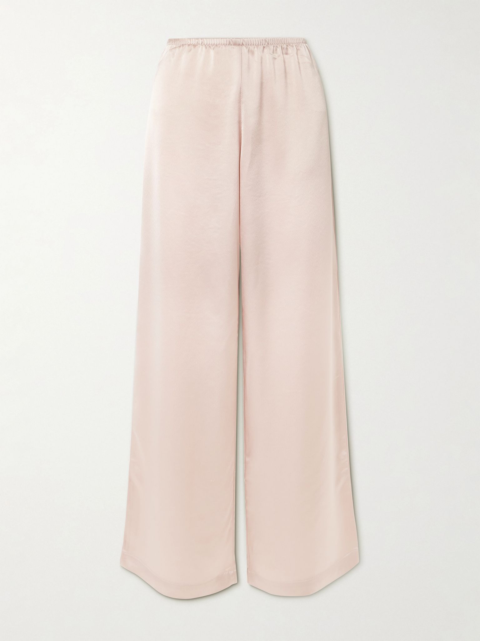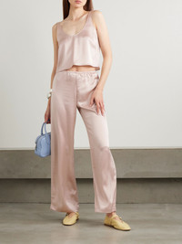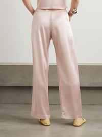 LESET's blush 'Barb' pants are designed with both comfort and style in mind. Cut from soft and fluid washed-satin, this mid-rise pair falls to relaxed wide legs. They're an effortless match to the coordinating top. Size & Fit - Fits true to size, take your normal size - High-rise, cut for a wide-leg fit - Elasticated at the waist for a comfortable fit - Lightweight, non-stretchy fabric - Model is 177cm/ 5’10” and is wearing a size Small Details & Care - Blush washed-satin - Pull on - 75% acetate, 25% polyester - Dry clean - Designer color: Sakura