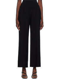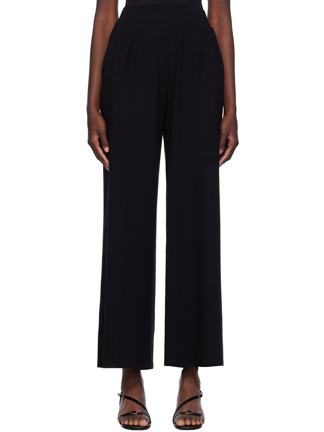 Relaxed-fit wide-leg brushed stretch polyester-blend jersey trousers. · High-rise · Elasticized rib knit waistband · Two-pocket styling · Pleats at front Supplier color: Black 47% polyester, 47% viscose, 6% spandex. Made in United States 242793F087002
