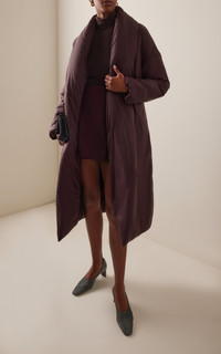 Founded by Lili Chemla, Leset is devoted to making irresistible casual essentials that are clean, modern and always enjoyable to wear. Whether it's day or night or somewhere in between, the LA-based brand's loungewear pairings elevate versatility to new heights. The 'Bo' coat has an oversized fit to slip on even your chunkiest winter knits. It's made from shell with a lightweight padding and a shawl collar that can be worn down or up to cover the neck. The below-the-knee silhouette makes it extra cozy. PRODUCT DETAILS - Resort '26 - Tie fastening - Composition: 100% polyamide - Designer color: Bordeaux - Dry clean - Imported