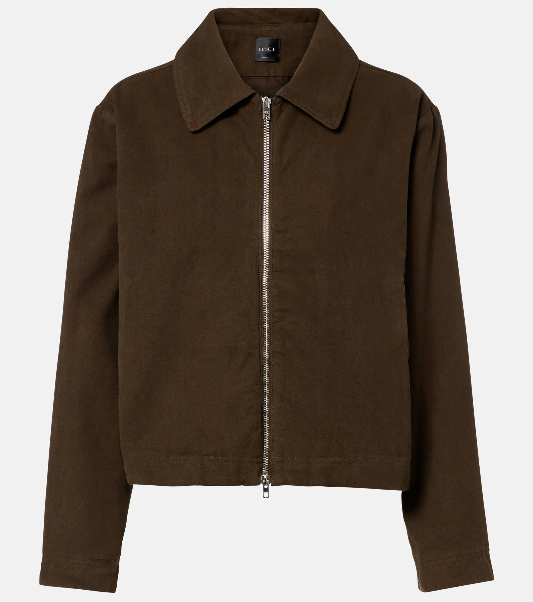 The Chloe jacket from Leset blends clean lines with effortless style, adding a versatile touch to your wardrobe. Crafted from cotton canvas, the design features a zipped front and a classic collar. Product Details - Material: 100% cotton - Care instructions: machine wash cold - Made in the USA - Designer color name: Olive - Item color: brown - Hardware color: silver - Collar: classic (Straight point) - Closure: two-way zipped front - Adjustable tabs at the waist - Pockets: side slit pockets - Item number: P01096578 Size & Fit - True to size - Straight fit - Non-stretchy fabric - Falls to the hip - The model seen in the picture is 178cm-5'10" and wearing a size XS