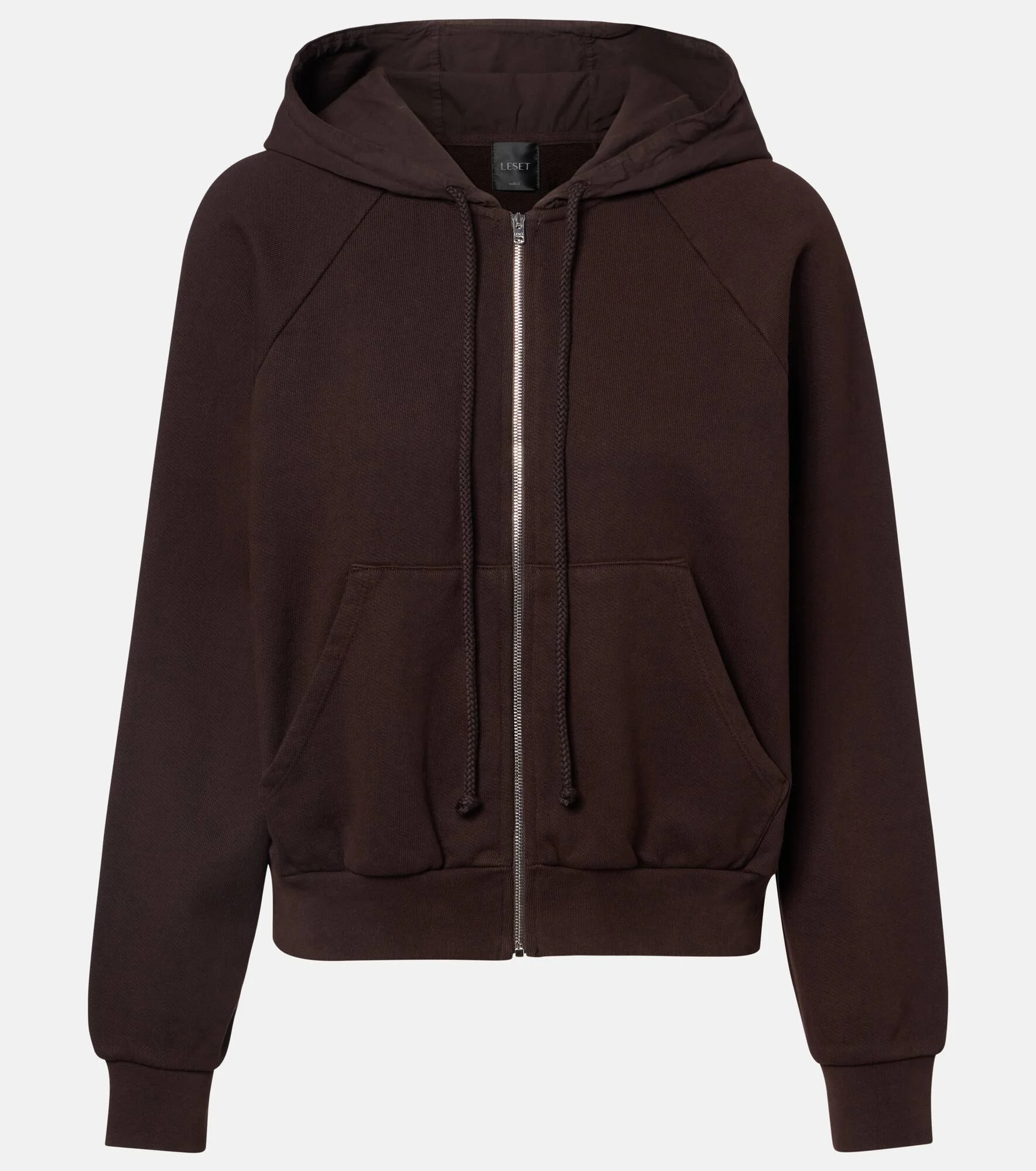 Leset makes wardrobe building simple with timeless designs and day-to-night versatility. A cozy example, the Jamie hoodie is made from soft cotton terry and features a classic zip-up, slightly cropped silhouette. Product Details - Material: 100% cotton - Care instructions: machine wash cold - Made in the USA - Designer color name: Chocolate - Item color: brown - Drawstring hood - Closure: zipped front - Pockets: patch pockets - Cuff: ribbed - Hem: ribbed - Item number: P01123135 Size & Fit - True to size - Designed for a loose fit - Slightly stretchy fabric - Slightly cropped - The model seen in the picture is 178cm-5'10" and wearing a size XS
