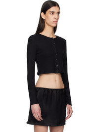 Brushed stretch jersey cardigan. · Crewneck · Button closure · Cropped hem Supplier color: Black 47% polyester, 47% rayon, 6% spandex. Made in United States 261793F095001
