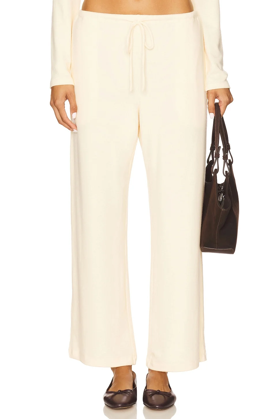 - 47% polyester 47% rayon 6% spandex - Hand wash - Front drawstring tie closure - Side seam pockets - Back slip pockets - Midweight soft jersey fabric - Item not sold as a set.22" at the leg opening - Revolve Style No. LSET-WP31 - Manufacturer Style No. LB192B-LAUREN