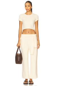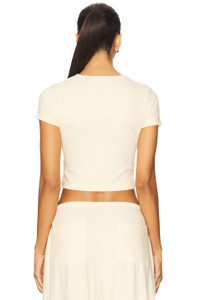 - 47% polyester 47% rayon 6% spandex - Hand wash - Front button closure - Cropped fit - Lightweight soft jersey fabric - Item not sold as a set - Garment is made with a semi-sheer fabric, undergarments can show through - Revolve Style No. LSET-WS77 - Manufacturer Style No. LT334A-LAUREN