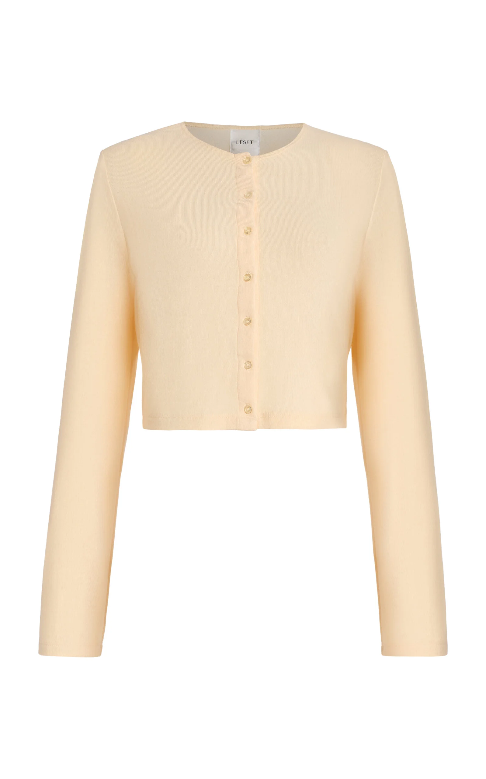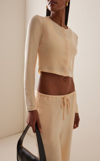 Founded by Lili Chemla, Leset is devoted to making irresistible casual essentials that are clean, modern and always enjoyable to wear. Whether it's day or night or somewhere in between, the LA-based brand's loungewear pairings elevate versatility to new heights. This neat cardigan is made from the label’s ‘Lauren Sweater Jersey’ – a bespoke knit with a discernibly soft finish. It is designed for a close fit, with long sleeves and a flattering cropped hem. Wear with the matching pants. PRODUCT DETAILS - Fall/Winter ‘25 - Button fastening - Composition: knit jersey - Dry clean - Designer Color: Vanilla - Imported