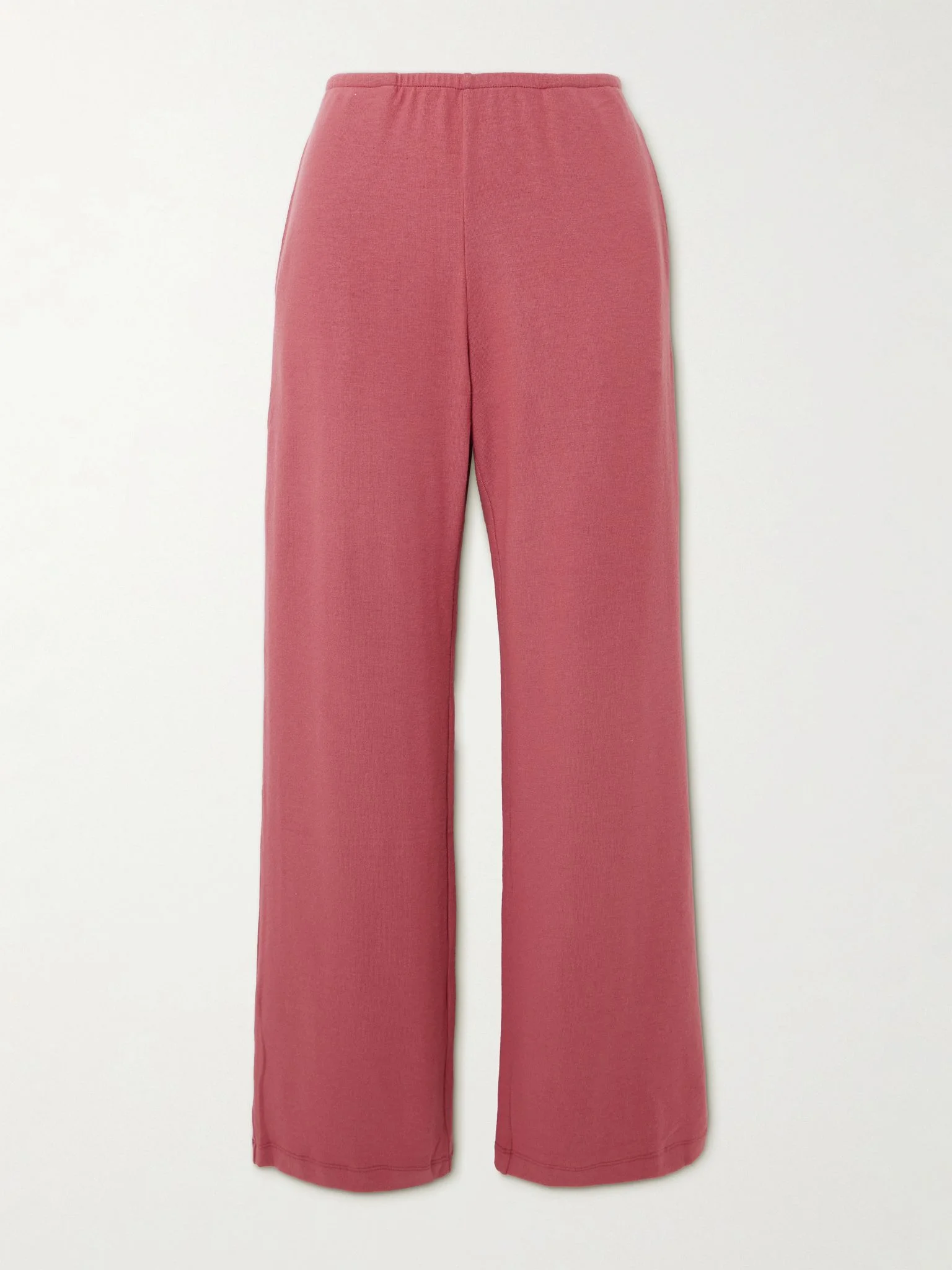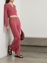LESET's 'Lauren' track pants are meant to be worn as a set with the coordinating tank, making styling a breeze. They're cut from soft stretch-jersey and have flared legs and on-seam pockets. Size & Fit - Fits true to size, however those who are between sizes should take the smaller size - High-rise, intended for a slim fit with a flared hem - Lightweight, stretchy fabric - S/M/L sizing Details & Care - Pink stretch-jersey - Pull on - 47% polyester, 47% viscose, 6% spandex - Hand wash - Designer color: Radish
