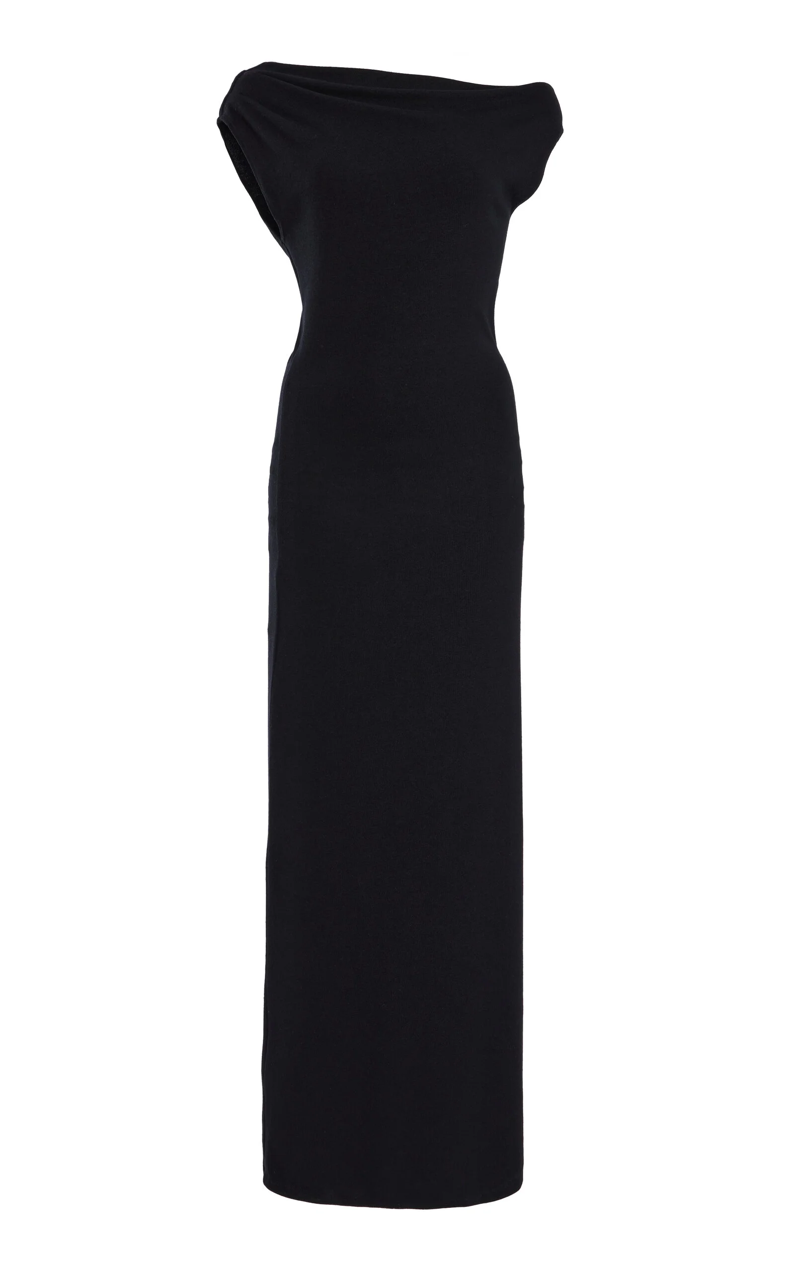 Lauren Ruched Asymmetric Jersey Maxi Dress black