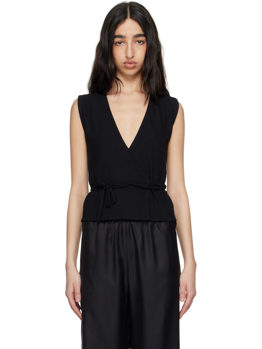 Black Lauren Sleeveless Wrap Vest