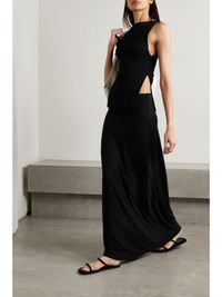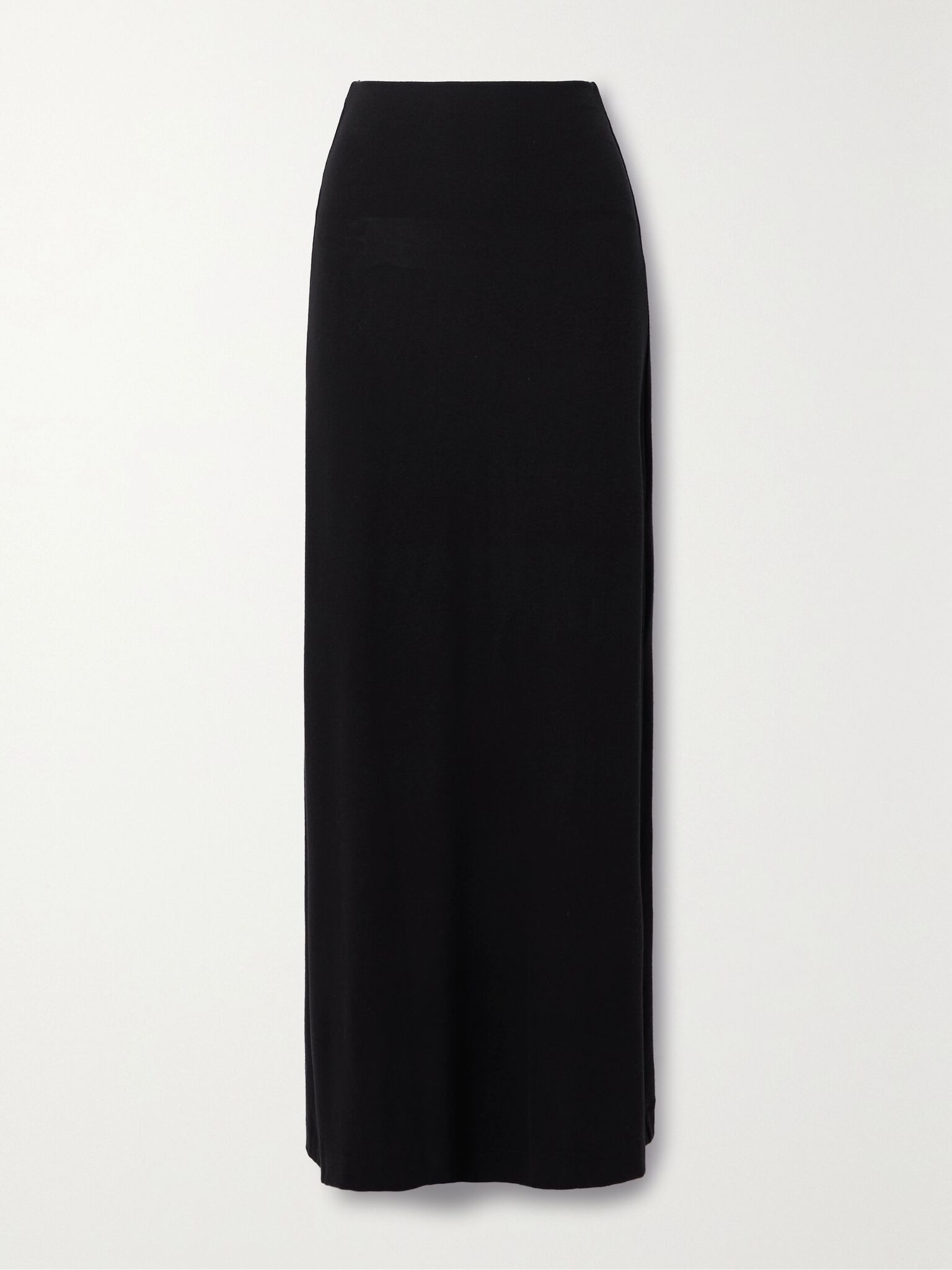 LESET believes that comfort and style should always go hand-in-hand. This 'Lauren' maxi skirt is made from a soft and flexible stretch-knit and has an elasticated waistband and straight design complete with a single, elongating seam at the reverse. Size & Fit - Fits true to size, take your normal size - Maxi-length, designed to be worn just below the natural waist - Mid-weight, slightly stretchy fabric - Model is 180cm/ 5’11” and is wearing a size Small Details & Care - Black stretch-knit - Slips on - 47% polyester, 47% rayon, 6% spandex - Hand wash