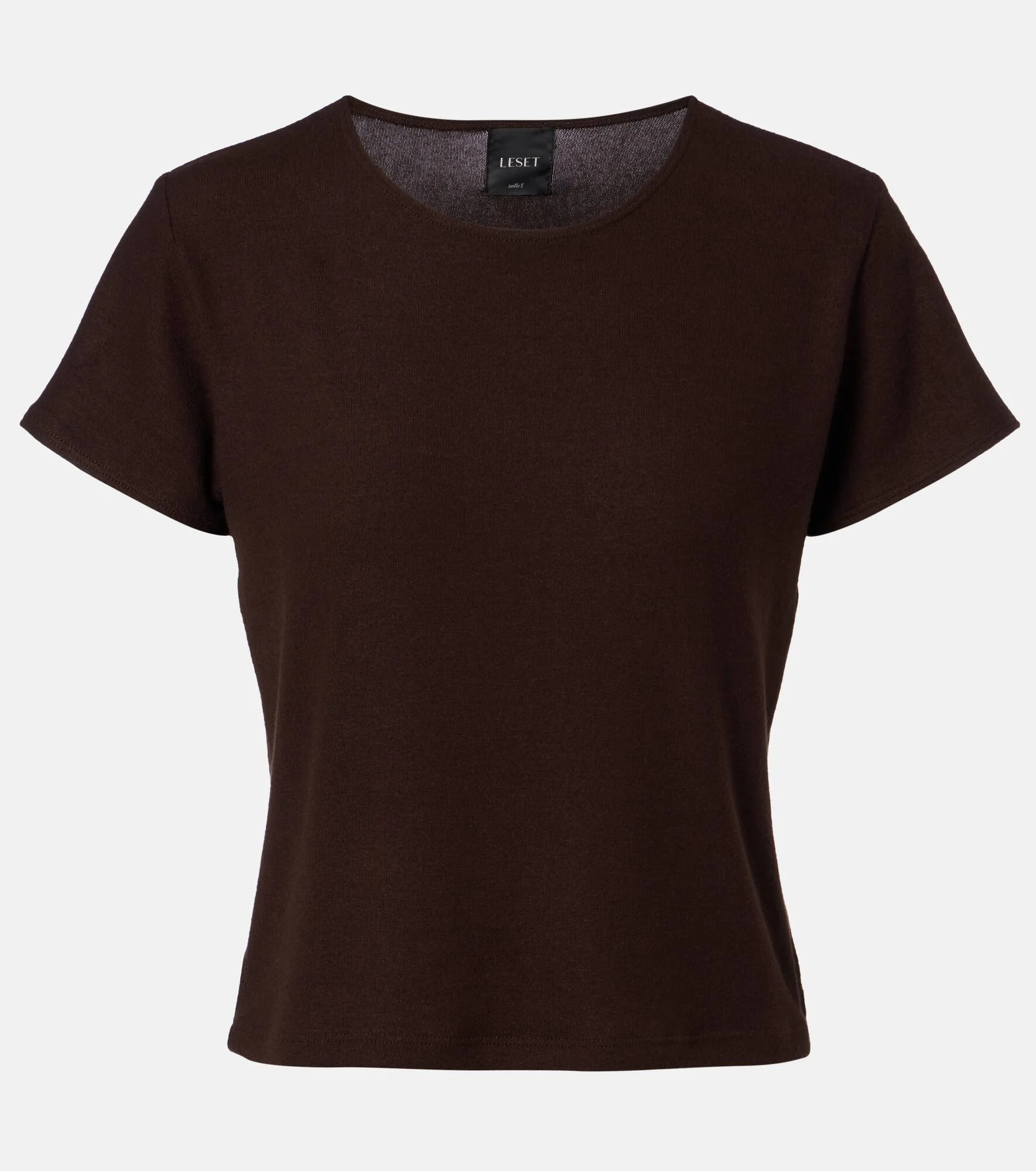 Leset makes wardrobe building simple with timeless designs and day-to-night versatility. The Margo Lauren T-shirt is made from lightweight jersey with a classic short-sleeved silhouette and a crewneck. Product Details - Material: 47% polyester, 47% rayon, 6% elastane - Care instructions: hand wash cold - Made in the USA - Designer color name: Chocolate - Item color: brown - Collar: crewneck - Item number: P01123120 Size & Fit - True to size - Straight fit - Stretchy fabric - Falls to the hip - The model seen in the picture is 178cm-5'10" and wearing a size XS
