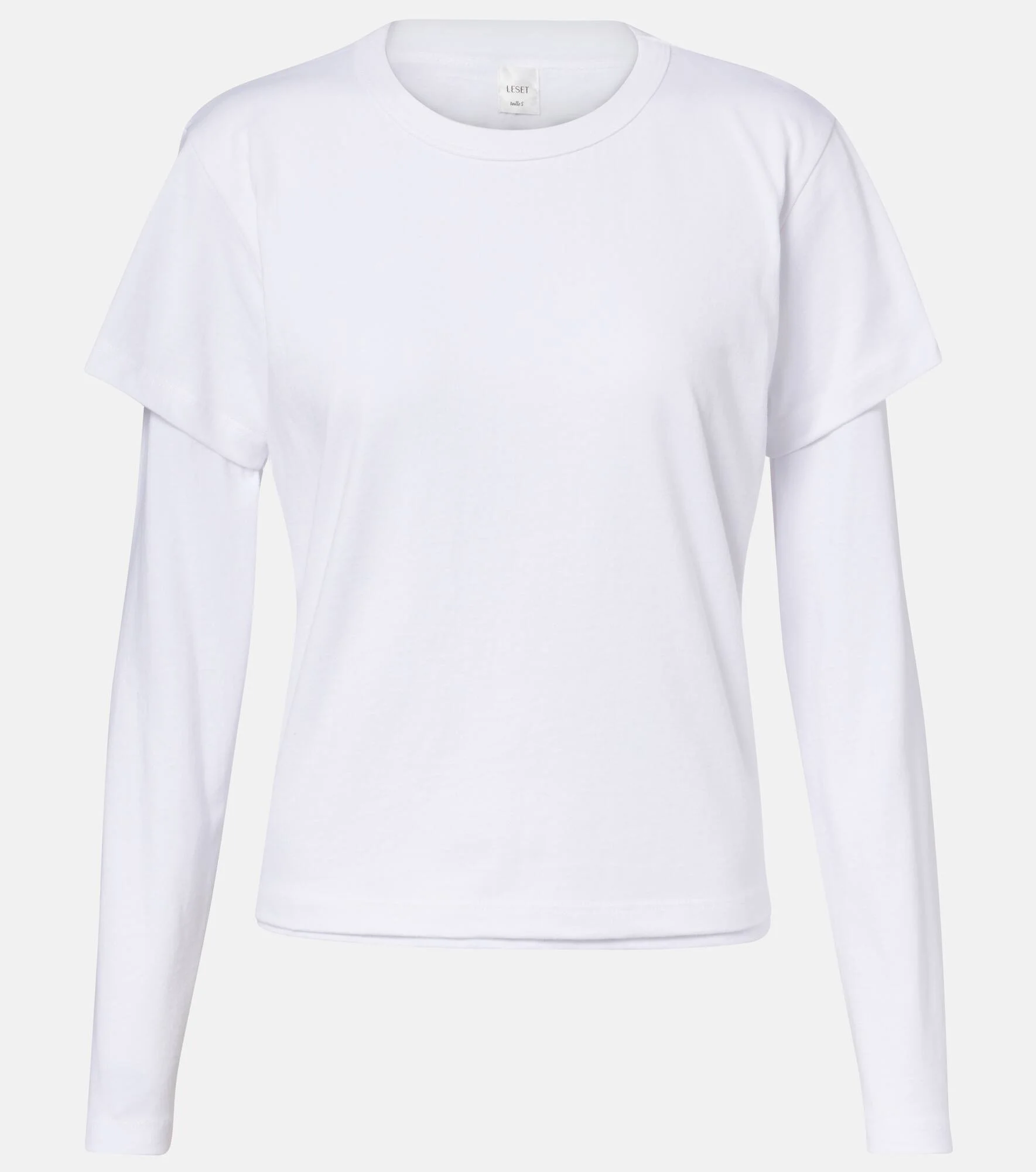Leset’s Margo t-shirt and long-sleeved top are proof that one should never underestimate the power of a solid basic. Made from cotton, each piece strikes the perfect balance between tailored and relaxed. Product Details - Material: 100% cotton - Care instructions: machine wash cold - Made in the USA - Designer color name: White - Item color: white - Collar: crewneck - Sleeves: long-sleeved - Item number: P01078683 Size & Fit - True to size - Straight fit - Slightly stretchy fabric - Slightly cropped - The model seen in the picture is 178cm-5'10" and wearing a size XS