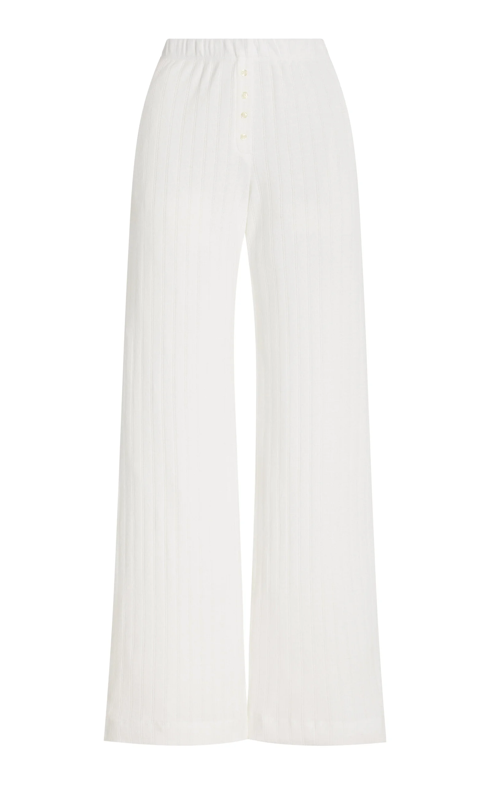 Founded by Lili Chemla, Leset is devoted to making irresistible casual essentials that are clean, modern and always enjoyable to wear. Whether it's day or night or somewhere in between, the LA-based brand's loungewear pairings elevate versatility to new heights. The signature boxer pant silhouette is made from Leset's bestselling pointelle — a soft cotton-knit with delicate eyelet detailing. They feature a comfortable elasticized waistband that sits at the natural waist, a relaxed leg, and tonal henley buttons. PRODUCT DETAILS - Resort '24 - Pull on - Composition: 100% cotton - Hand wash - Imported SIZE & FIT - Our model is wearing a size Small - Model is 5'10" with a 31.5" bust, 23.5" waist, and 35" hip - Designed for a relaxed fit
