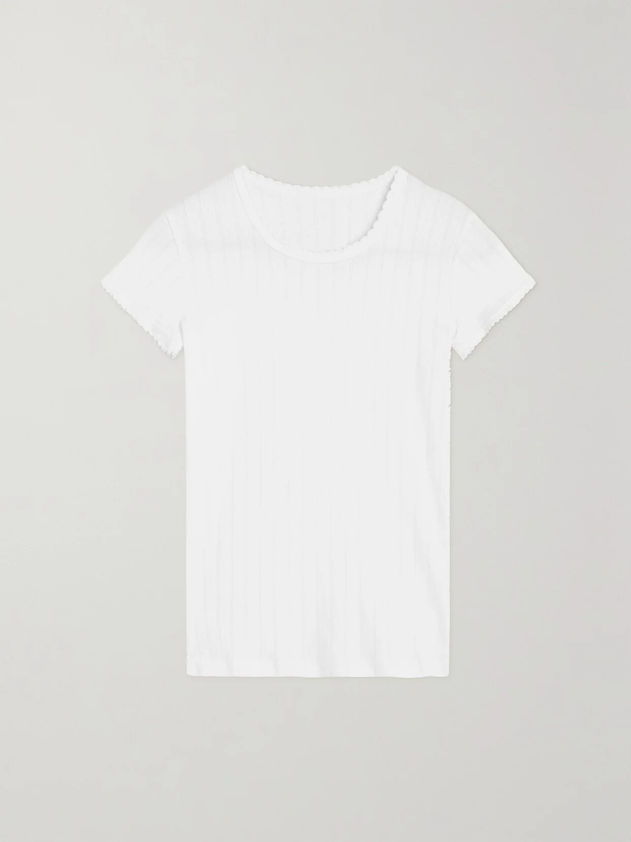 LESET was founded on the belief that when it comes to clothes, you shouldn't have to sacrifice comfort for style (or vice versa). This slim-fit T-shirt is made from soft pointelle-knit cotton-jersey and has pretty scalloped trims. Wear it with the matching cardigan.