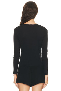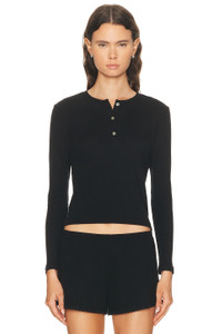 Pointelle Long Sleeve Henley Top
