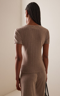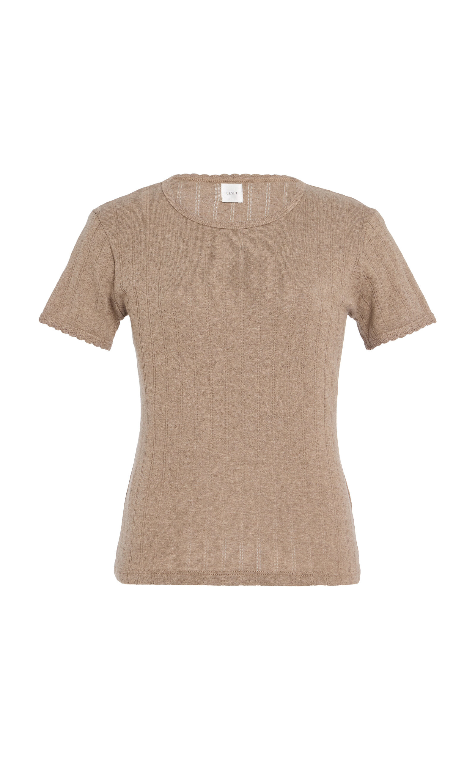 Founded by Lili Chemla, Leset is devoted to making irresistible casual essentials that are clean, modern and always enjoyable to wear. Whether it's day or night or somewhere in between, the LA-based brand's loungewear pairings elevate versatility to new heights. This label’s ‘Slim Fit Tee’ is updated this season in pointelle – a fine knit with traditional embroideries. Aptly named, its closely cut with neat short sleeves. Complete this set with the corresponding pants. PRODUCT DETAILS - Fall/Winter ‘25 - Slip on - Composition: knit - Dry clean - Designer Color: Beige Melange - Imported