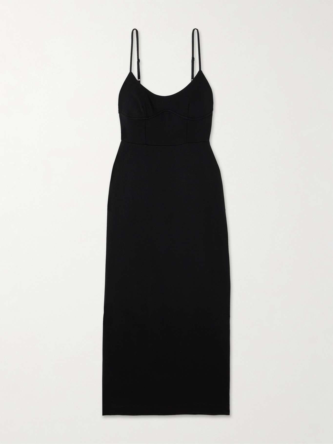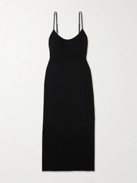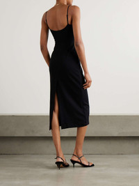LESET's 'Rio' dress takes cues from the minimally chic styles of the '90s. Made in Los Angeles from stretch-ponte, it has a corset-inspired bodice with exposed seams and skims your figure all the way to the midi hem. Adjust the pin-thin straps to your preferred fit. Size & Fit - Fits true to size, take your normal size - Designed for a close fit - Fully adjustable shoulder straps - Mid-weight, stretchy fabric - Model is 180cm/ 5'11" and is wearing a size XSmall Model measurements: - Bust: 76cm/ 30" - Waist: 64cm/ 25" - Hip: 86cm/ 34" Details & Care - Black stretch-ponte - Slips on - 74% viscose, 18% polyamide, 8% elastane - Hand wash
