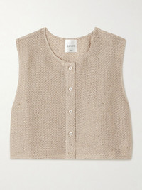 Stella cropped sequin-embellished linen-blend gauze vest Sand