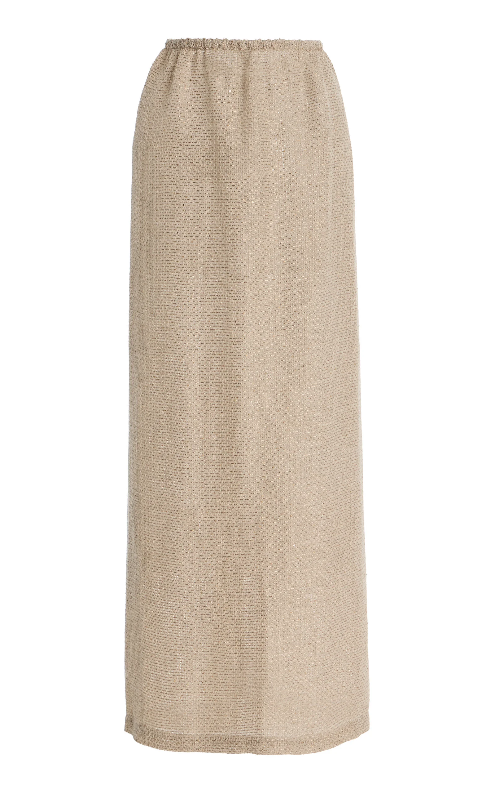 Founded by Lili Chemla, Leset is devoted to making irresistible casual essentials that are clean, modern and always enjoyable to wear. Whether it's day or night or somewhere in between, the LA-based brand's loungewear pairings elevate versatility to new heights. Cut from a subtly sequined linen-blend, the 'Stella' skirt is an easy, pull-on style that features an elasticized waistband for comfortable all day wear. Build a Stella Set with the matching top. PRODUCT DETAILS - Pre-Fall '25 - Pull on - Composition: 67% linen, 29% polyester, 4% polyamide - Designer color: Dune - Dry clean - Made in the USA SIZE & FIT - Our model is wearing a size Small - Model is 5’10” with a 31” bust, 23.5” waist, and 33.5” hip