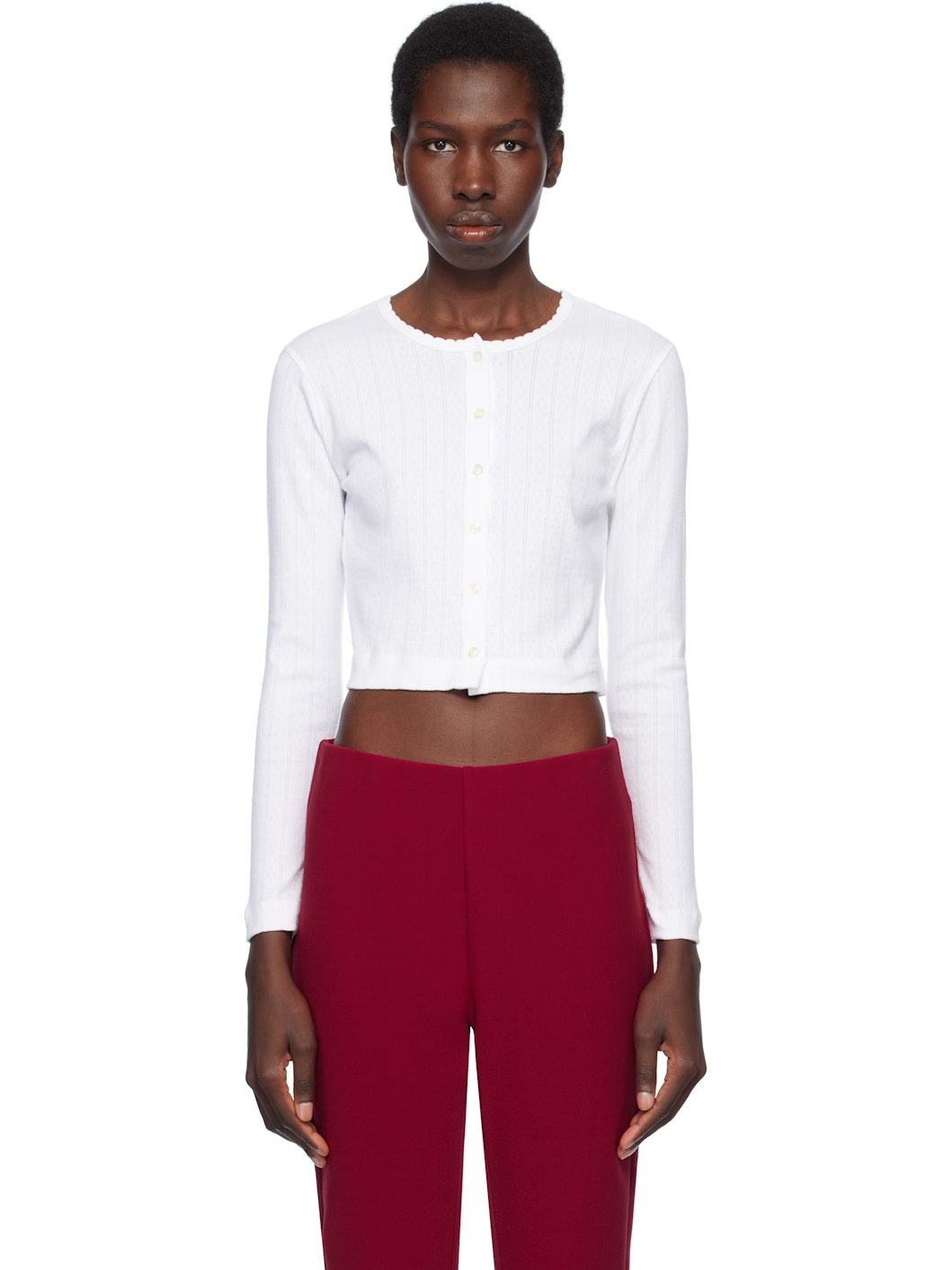Pointelle-knit cotton cardigan. · Scalloped edge at rib-knit crewneck · Button closure · Cropped hem Supplier color: White 100% cotton. Made in United States 251793F095004