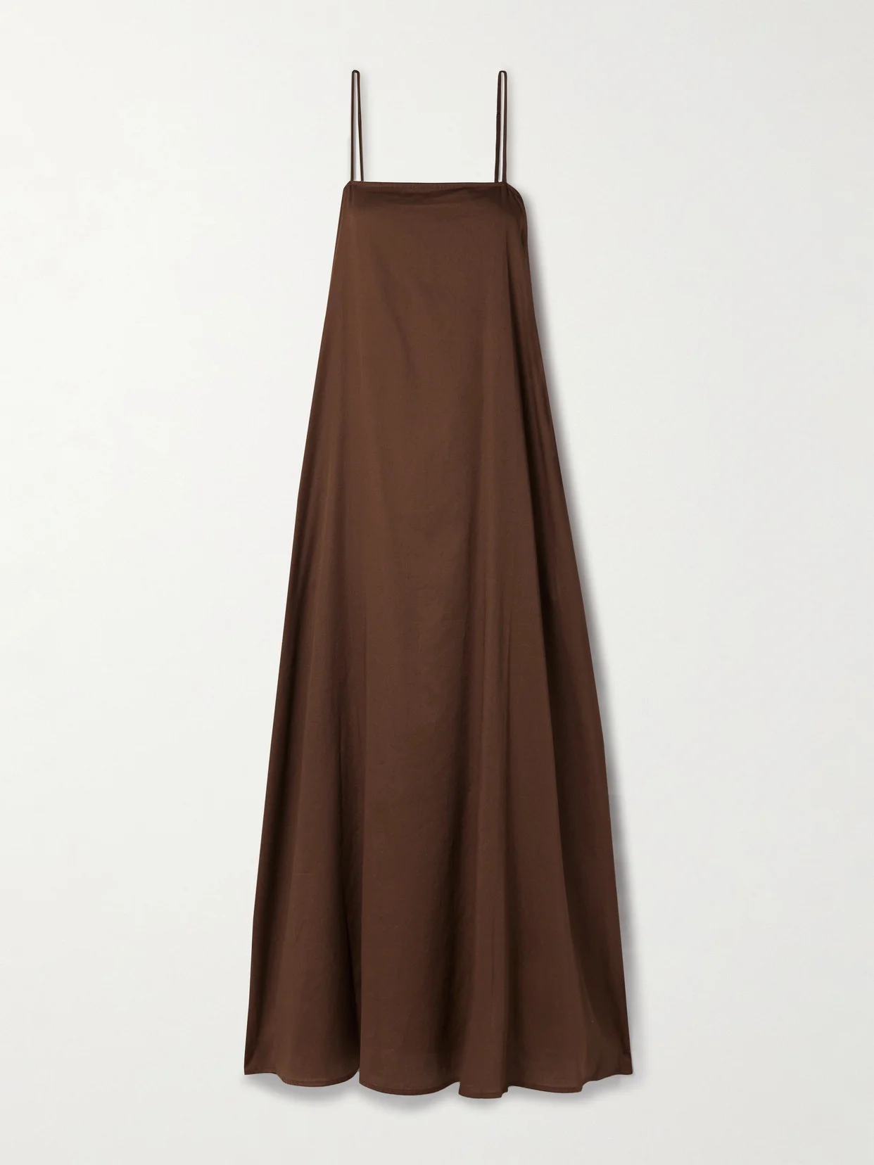 LESET specialize in LA beachside essentials, like this 'Yoko' maxi dress. Made from chocolate cotton-voile, it has slim adjustable straps and falls to a floor-length skirt for supreme comfort and a breezy feel. Add mules and dainty jewelry to bring the loose silhouette to life.