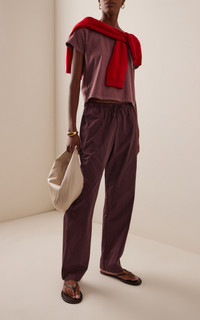 Founded by Lili Chemla, Leset is devoted to making irresistible casual essentials that are clean, modern and always enjoyable to wear. Whether it's day or night or somewhere in between, the LA-based brand's loungewear pairings elevate versatility to new heights. Cut from cotton twill, The Yoshi Drawstring Pant features an adjustable drawstring waistband and a relaxed, straight leg silhouette. Make it a matching set with The Zoe Yoshi Polo. PRODUCT DETAILS - Resort '26 - Pull on - Composition: 79% cotton, 21% lyocell - Designer color: Bordeaux/ Rose - Dry clean - Made in the USA