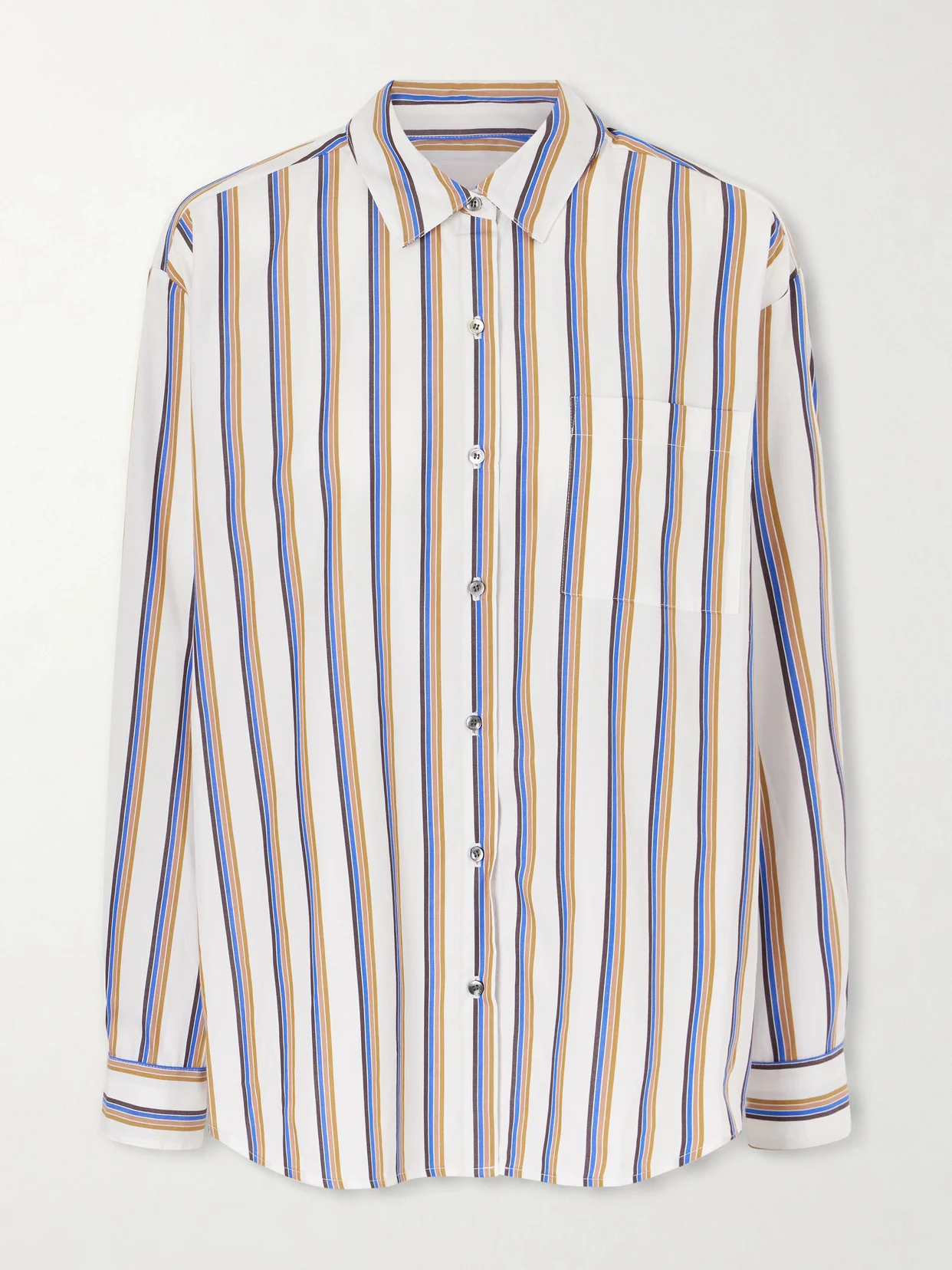 LESET's 'Yoshi' shirt is patterned with crisp vertical stripes that emphasize its relaxed, elongated silhouette. Designed with a classic collar and buttoned cuffs, it drapes softly through the body for an easy feel. Wear it loosely over tailored pants or half-tucked into denim.