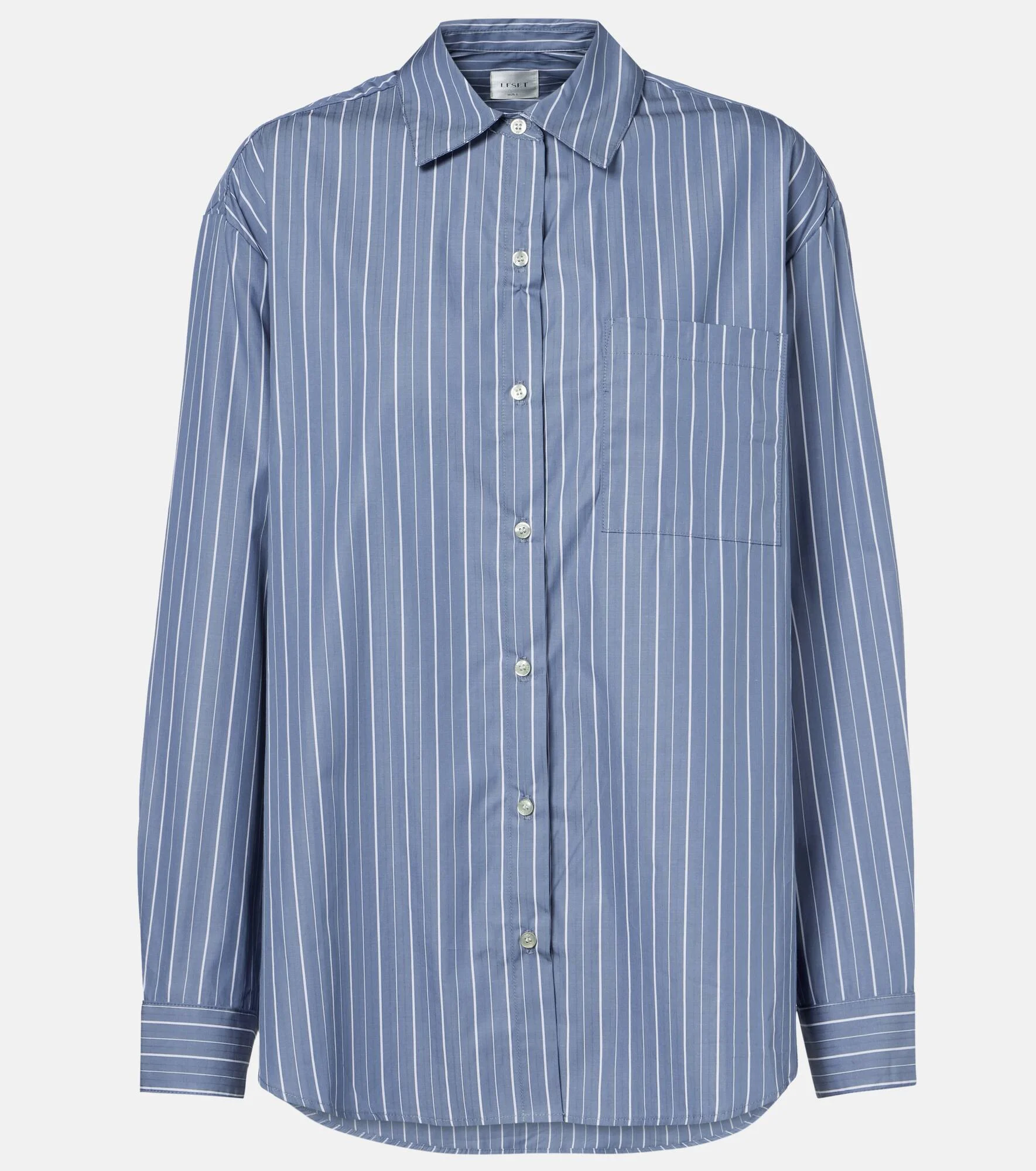 Leset embodies a signature blend of sophistication and ease, offering timeless styles that adapt to your lifestyle. The Yoshi shirt is crafted from a cotton-blend twill and finished with classic stripes. Product Details - Material: 79% cotton, 21% lyocell - Care instructions: machine wash cold - Made in the USA - Designer color name: River Stripe - Item color: blue, white - Collar: classic (Straight point) - Cuff: buttoned - Pockets: patch pockets - Closure: buttoned front - Item number: P01110232 Size & Fit - True to size - Dropped shoulders - Designed for a loose fit - Falls below the hip - The model seen in the picture is 178cm-5'10" and wearing a size XS