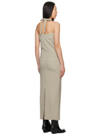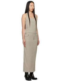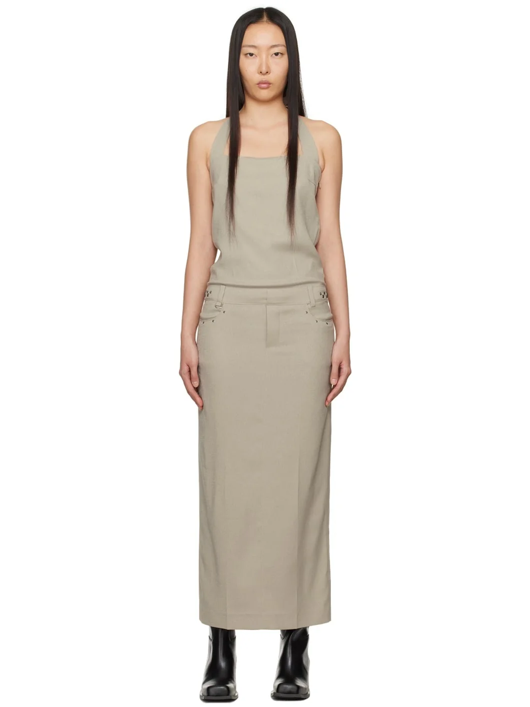 Stretch polyester canvas dress. · Square neck · Graphic hardware at front and side seams · Belt loops and D-ring hardware at waist · Welt pockets · Mock-fly · Self-tie halter straps · Concealed zip closure at side seam · Central vent at back hem · Full poplin lining Supplier color: Beige Body: 97% polyester, 3% polyurethane. Lining: 100% polyester. Made in South Korea 241732F055004