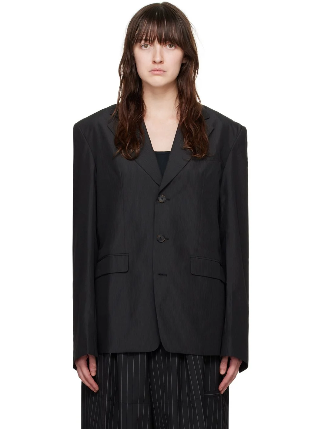 Stretch polyester- and wool-blend georgette blazer. Stripes throughout. · Notched lapel · Button closure · Welt pocket and flap pockets · Darts at front · Removable shoulder pads · Four-button surgeon's cuffs · Locker loop at back collar · Cutouts at back · Twin vents at back hem · Welt pocket at interior · Full logo-woven satin lining · Logo-engraved horn hardware Supplier color: Black Body: 88% polyester, 8% wool, 4% polyurethane. Lining: 52% polyester, 48% rayon. Made in South Korea 241732F057000