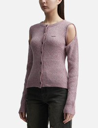 - Lesugiatelier - Cut-Out Mohair Cardigan - Mixed-color blended yarn - Long sleeves - Button closure - Crewneck - Ribbed trims - Cut-out details at shoulder and rear - Silver-tone logo hardware embellishment on chest - Straight hem - Color: Pink - Country Of Origin: KR - Material: 43% Acrylic, 30% Nylon, 20% Wool, 7% Mohair - See more Knitwear and Clothing SIZING - Model wears size 1 - Model measures: Height 173cm, Chest 32”/81cm, Waist 23’’/58.42cm, Hip 34”/86.4cm