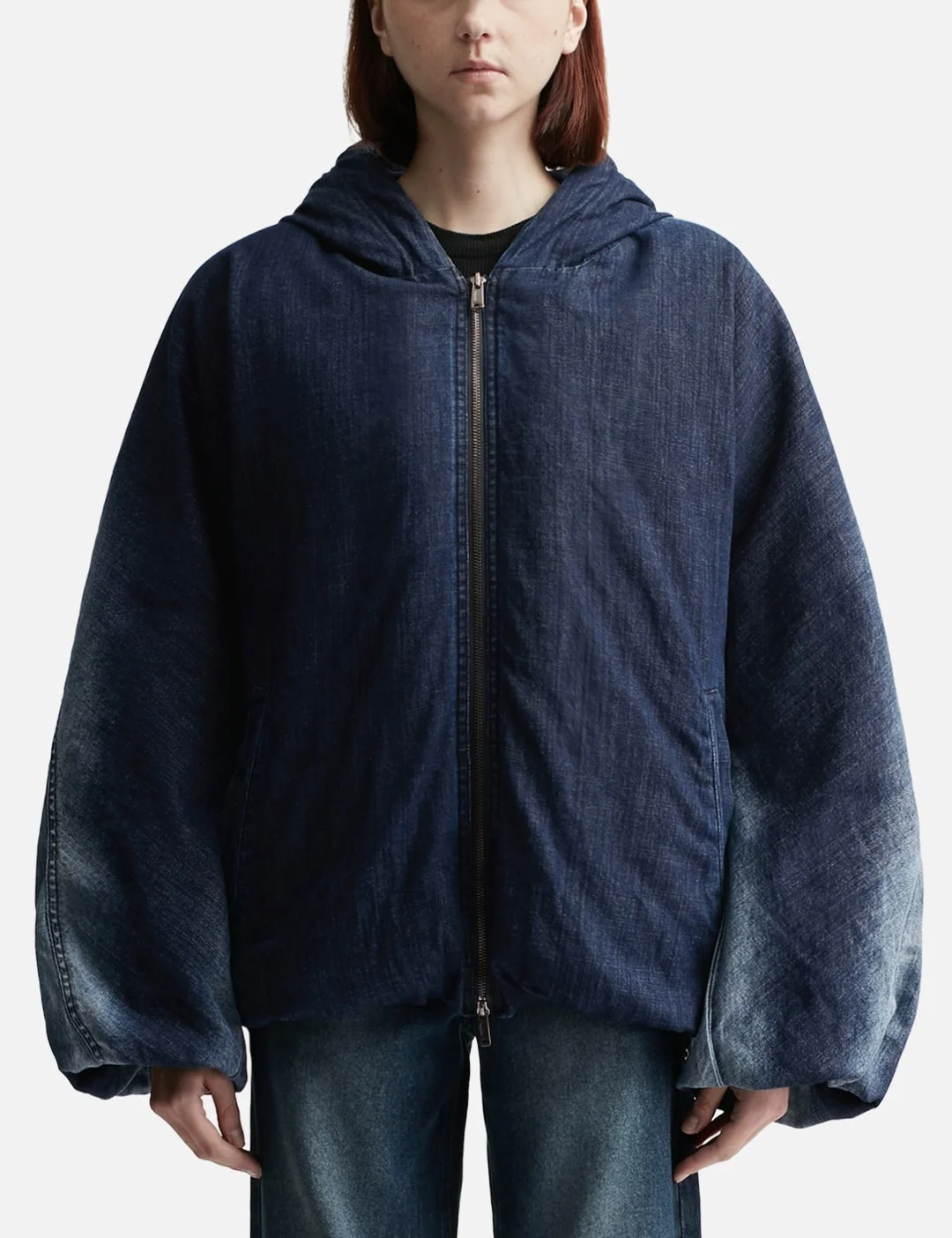 - Lesugiatelier - Denim Hooded Puffer Jacket - Cotton denim fabric - 3M Thinsulate insulation - Zip closure - Two side pockets - Elasticated cuffs - Drawcord hem - Color: Dark Blue - Country Of Origin: KR - Material: 100% Cotton; Filling: 100% Polyester - See more Puffer Jackets, Jackets and Clothing SIZING - Model wears One Size - Model measures: Height 177cm, Chest 32”/81cm, Waist 23.5”/59.7cm, Hip 33’’/83.8cm