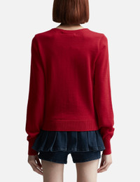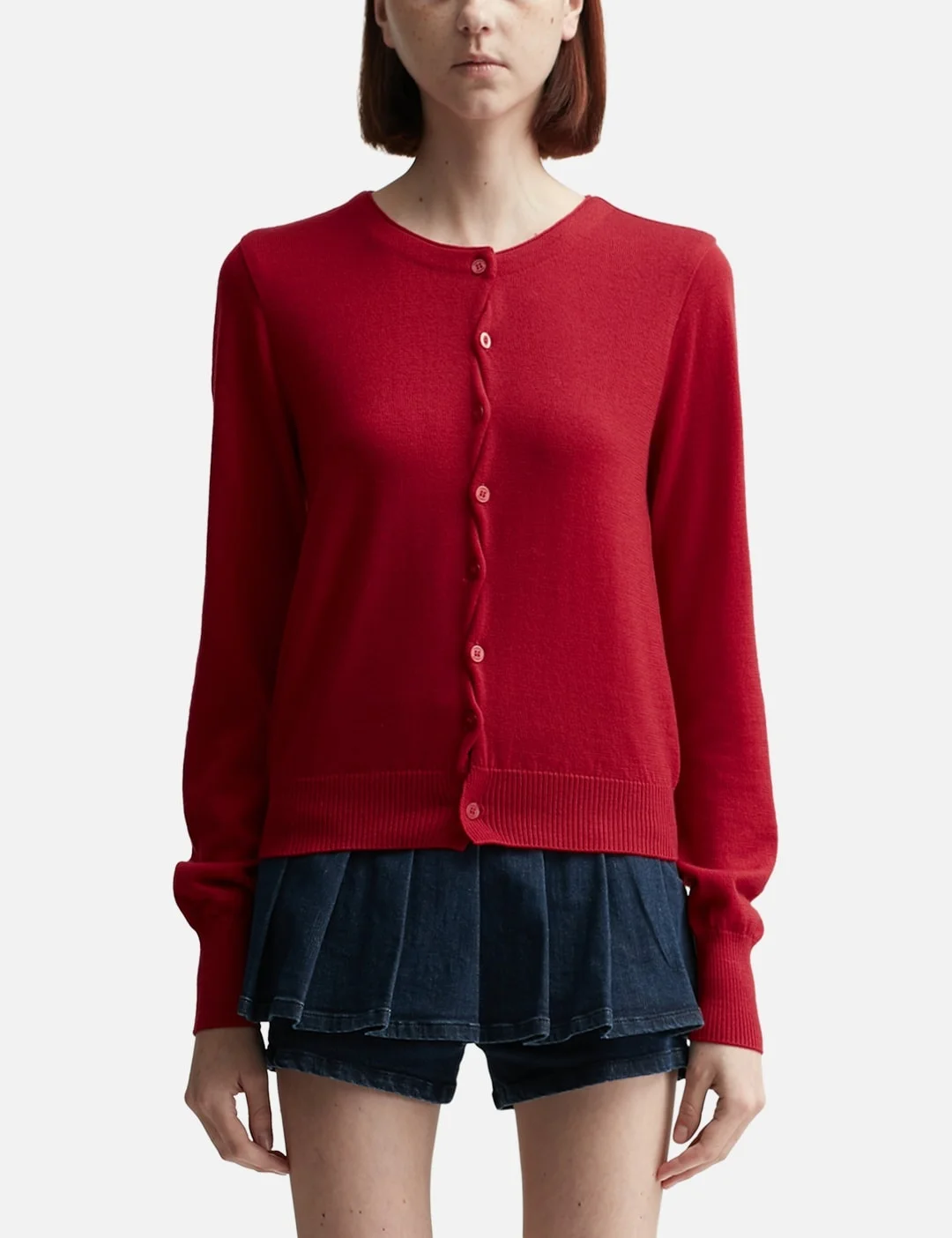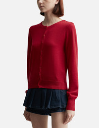 - Lesugiatelier - Merino Wool Cardigan - Soft merino wool knit - Round neckline - Zig-zag button placket - Ribbed cuffs and hem - Color: Red - Country Of Origin: KR - Material: 100% Merino Wool - See more Knitwear and Clothing SIZING - Model wears size 1 - Model measures: Height 177cm, Chest 32”/81cm, Waist 23.5”/59.7cm, Hip 33’’/83.8cm