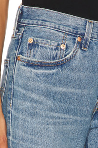 - 100% cotton - Machine wash - Zip fly with button closure.5-pocket styling - Intentionally frayed detailing - Rigid denim fabric.18" at the knee narrows to 16" at the leg opening - Revolve Style No. LEIV-WJ477 - Manufacturer Style No. A1959-0106