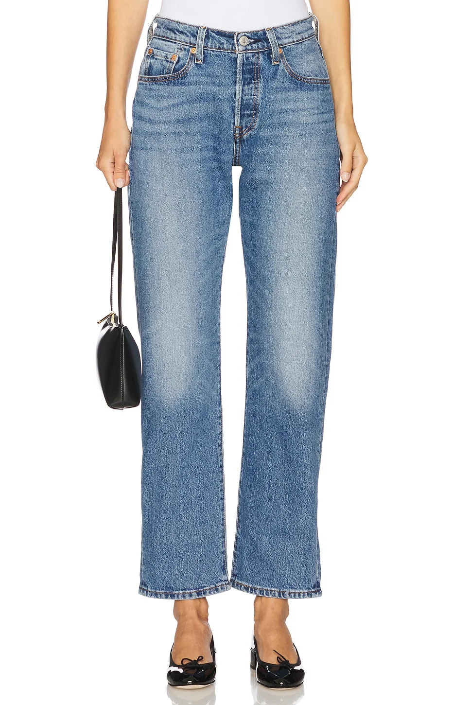- 99% cotton 1% elastane - Machine wash cold - Button fly closure.5-pocket design - Contrast logo patch at back waistline - Midweight subtle stretch denim fabric with intentional fading.17" at the knee narrows to 16" at the leg opening - Revolve Style No. LEIV-WJ465 - Manufacturer Style No. 0036A-0002