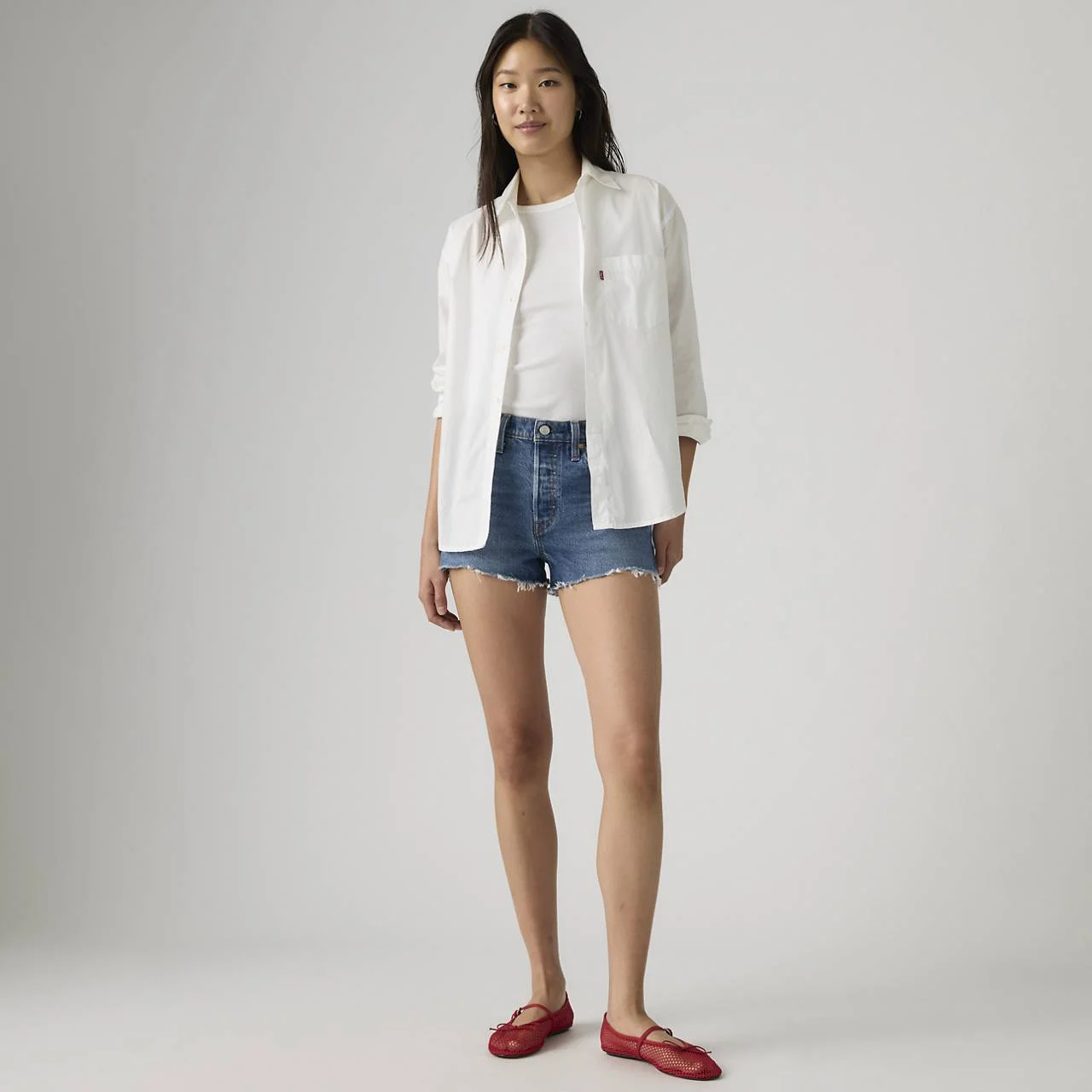 We didn’t just introduce the blue jean—we also invented the first-ever jean shorts. An iconic style that defines your waist and hugs you in all the right places, our 501® Original Shorts are comfy, leg-lengthening, and perfect for all-around wear. - The first-ever jean shorts, updated with a waist-defining high rise - A universally-flattering summer essential - Designed with a vintage-inspired fit - Hold the H2O: This garment is made using recycled water, which helps us to reduce our impact on this finite resource Style # 563270528 Color: Roll Away - Medium Wash