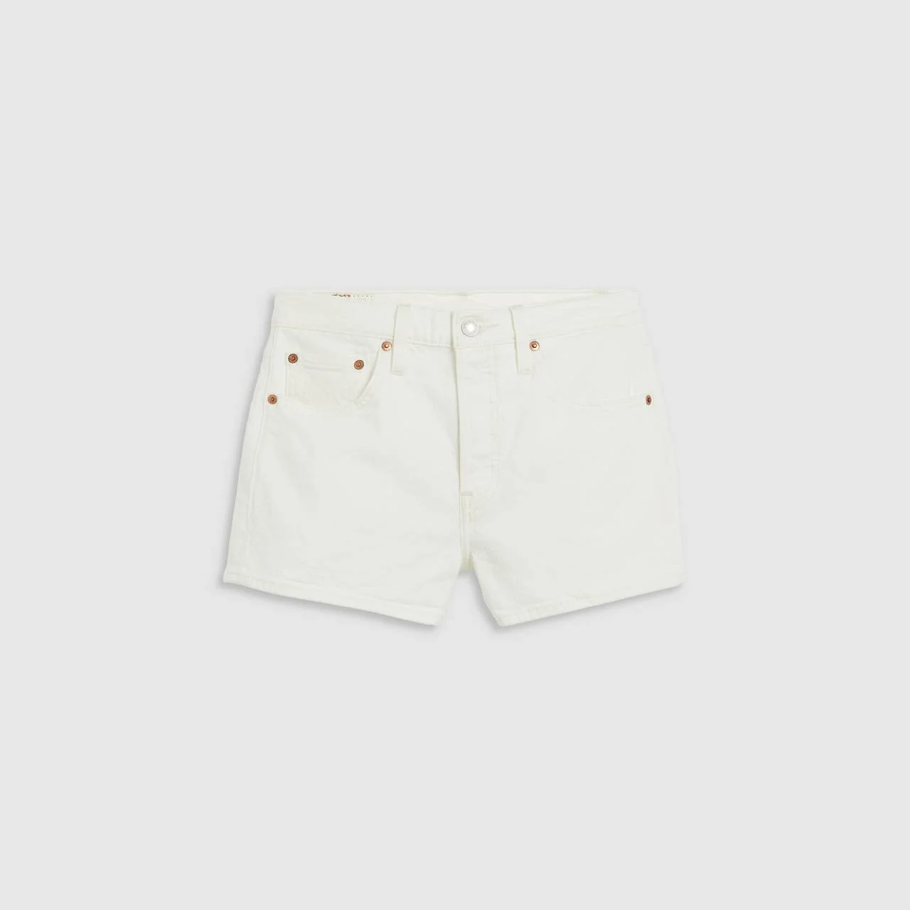 We didn’t just introduce the blue jean—we also invented the first-ever jean shorts. An iconic style that defines your waist and hugs you in all the right places, our 501® Original Shorts are comfortable, leg-lengthening, and perfect for all-around wear. - The first-ever jean shorts, updated with a waist-defining high rise - A universally-flattering summer essential - Designed with a vintage-inspired fit - Hold the H2O: This garment was made using recycled water, which helps us to reduce our impact on this finite resource Style # 563270455 Color: Disco Nights - White How it Fits - Fitted Through Hip - High rise: 10 1/2" - Inseam: 2 1/2",Leg opening: 23 1/4",Measurements based on size 27 waist Composition & Care - 97% Cotton, 2% Elastomultiester (T400), 1% Elastane - Denim - Stretch - Button fly - 5-pocket styling - Wash your jeans once every 10 wears at most; this increases their lifespan and saves natural resources.Machine wash cold, Do not bleach, Tumble dry medium, Warm iron if needed, Dry cleaning possible, Wash inside out with like colors - Made in China, Cambodia